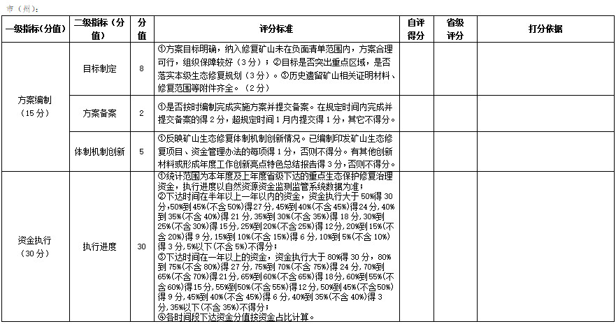 四川省歷史遺留廢棄礦山生態(tài)修復資金年度績效考評表