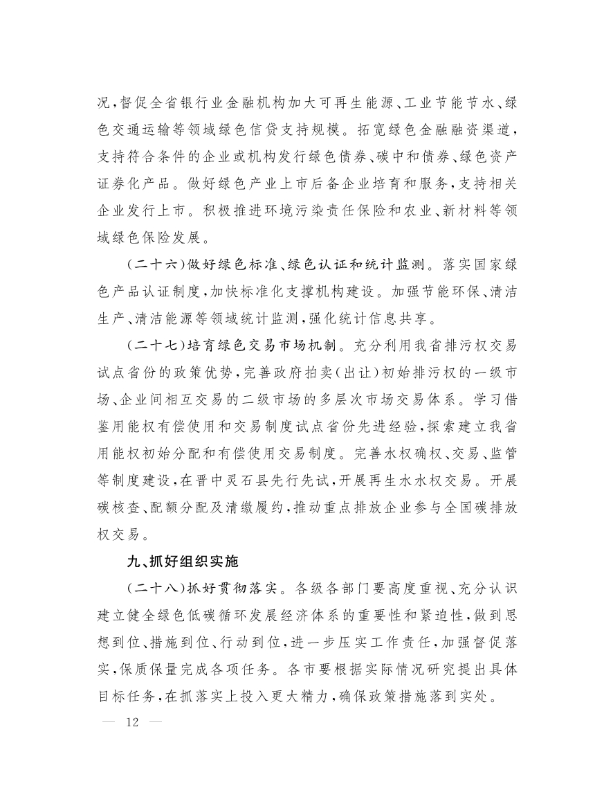 山西省人民政府日前發(fā)布關(guān)于<加快建立健全我省綠色低碳循環(huán)發(fā)展經(jīng)濟體系>的實施意見