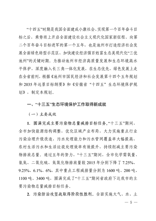 池州市“十四五”生態(tài)環(huán)境保護(hù)規(guī)劃