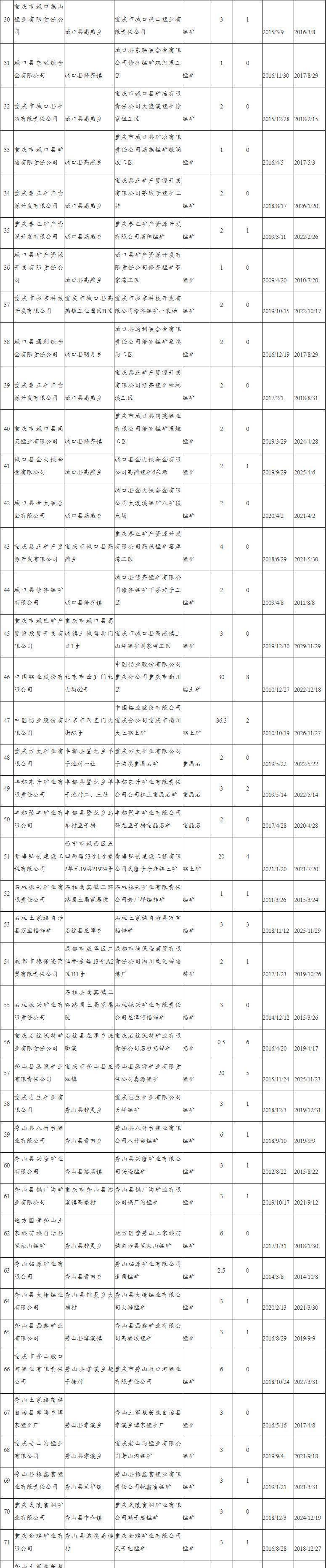 4.重慶市現(xiàn)有礦山開(kāi)采許可信息表