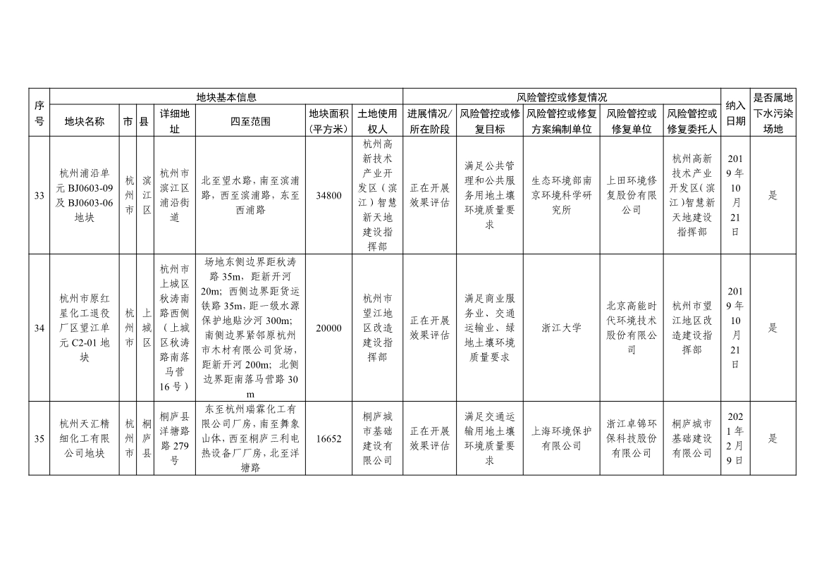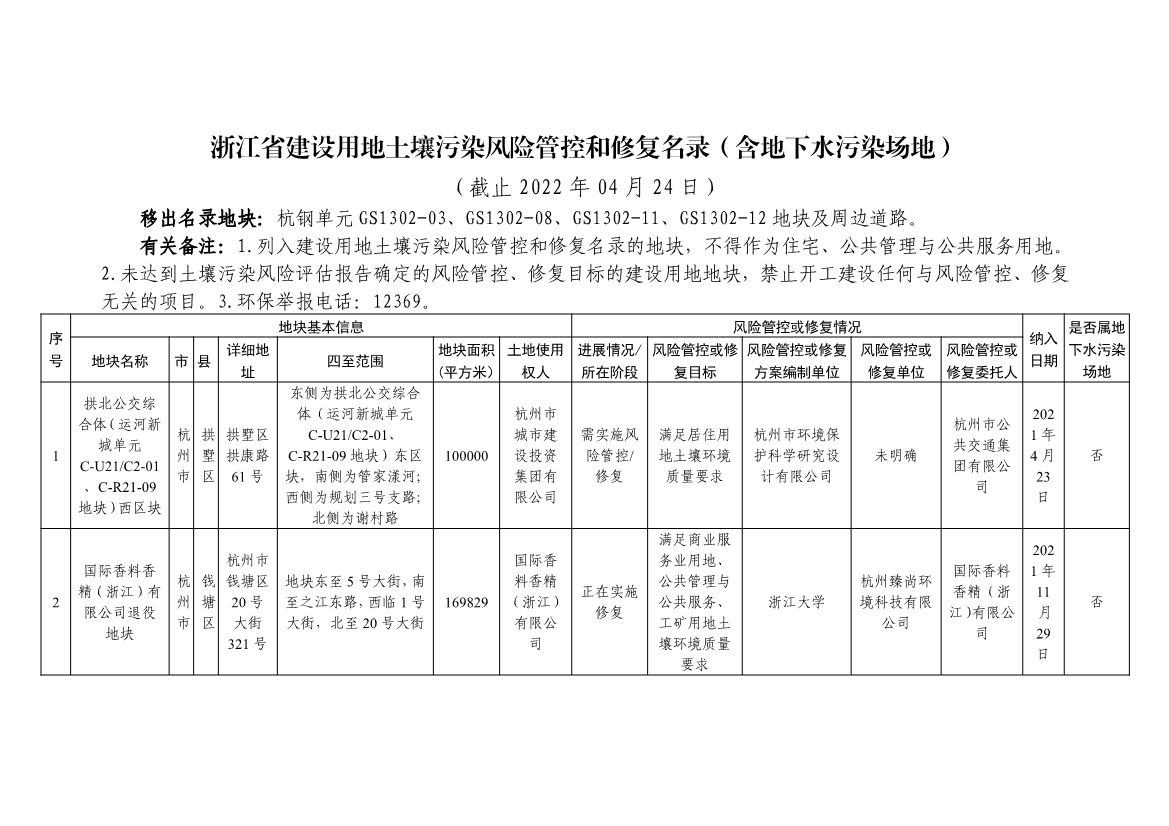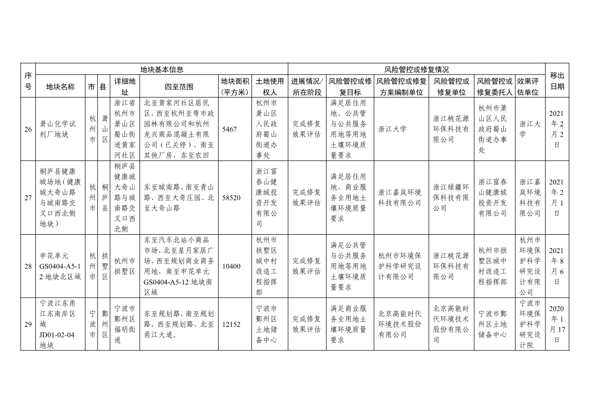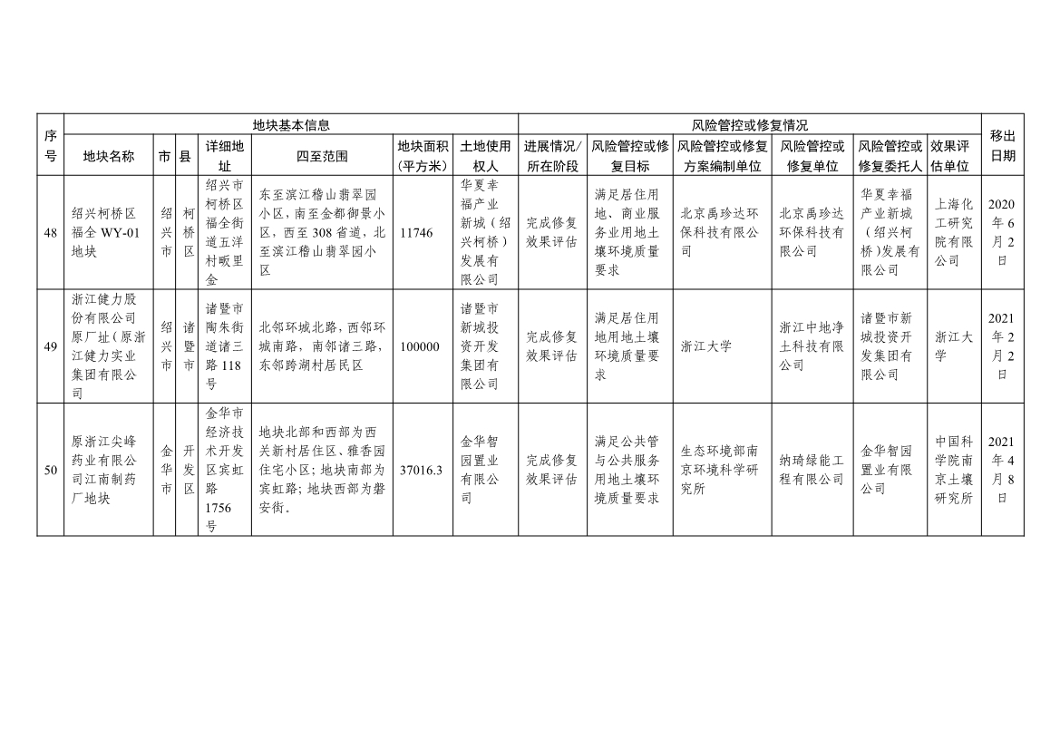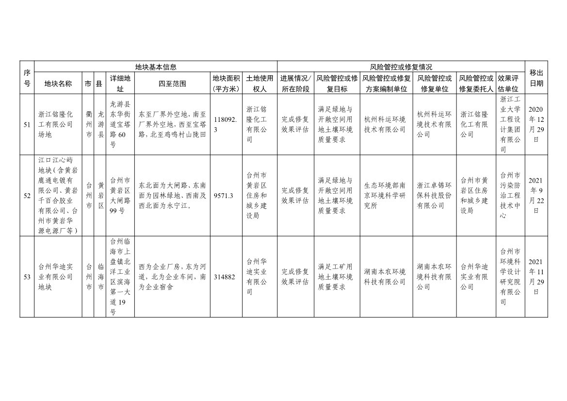 浙江省建設用地土壤污染風險管控和修復名錄及移出清單(4.24更新)