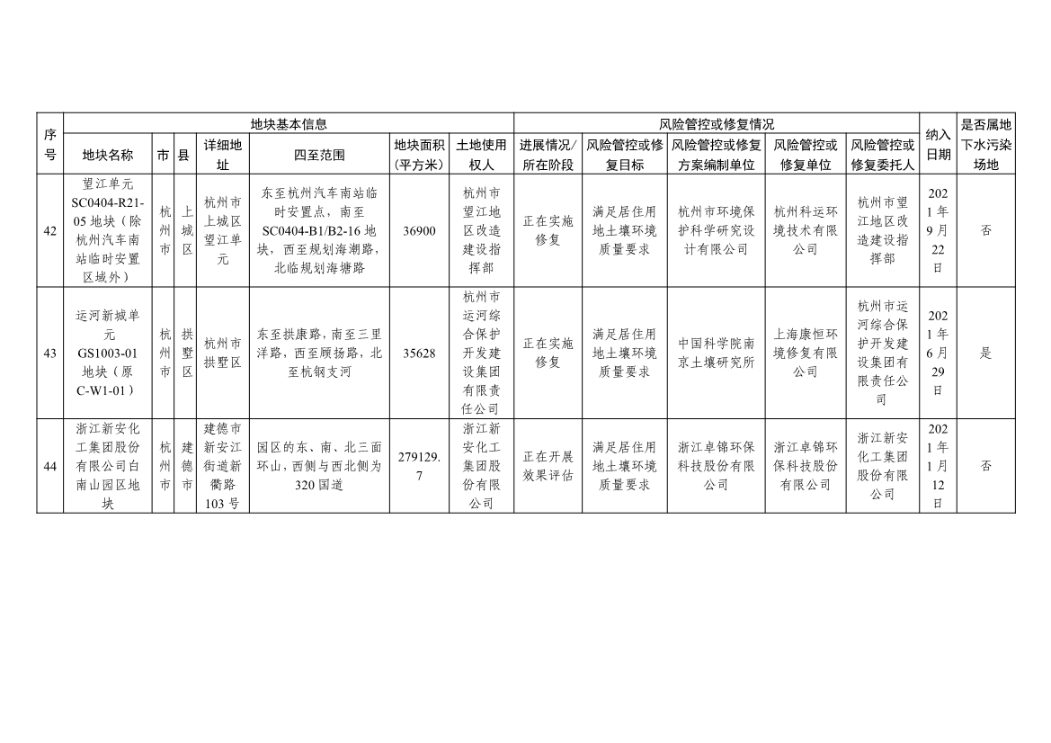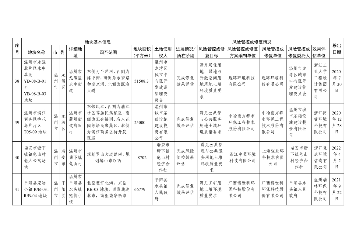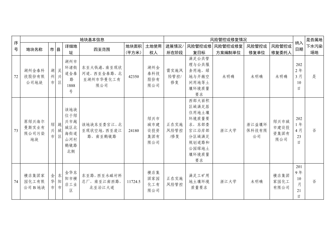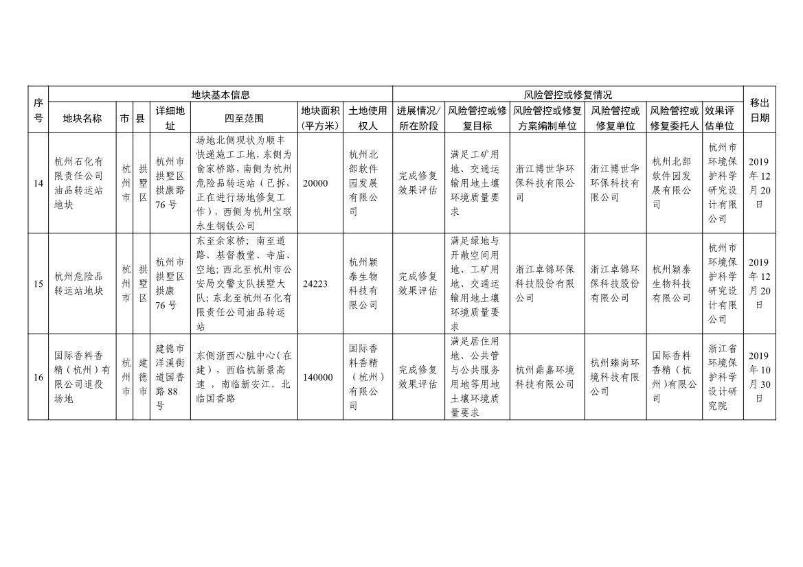 浙江省建設用地土壤污染風險管控和修復名錄及移出清單(4.24更新)