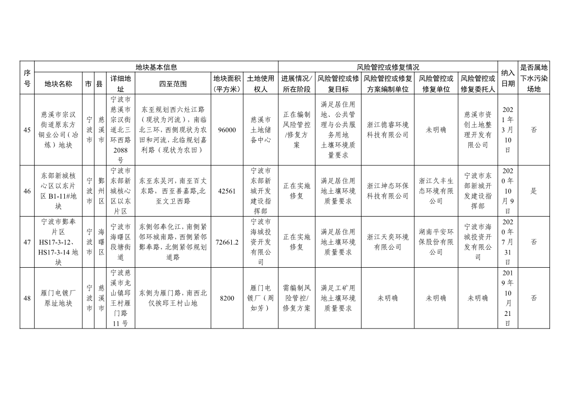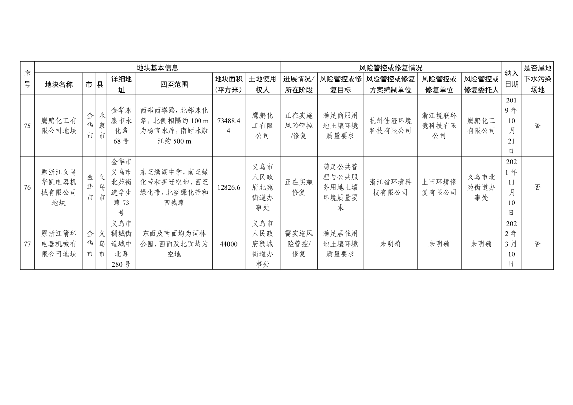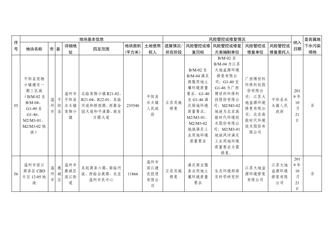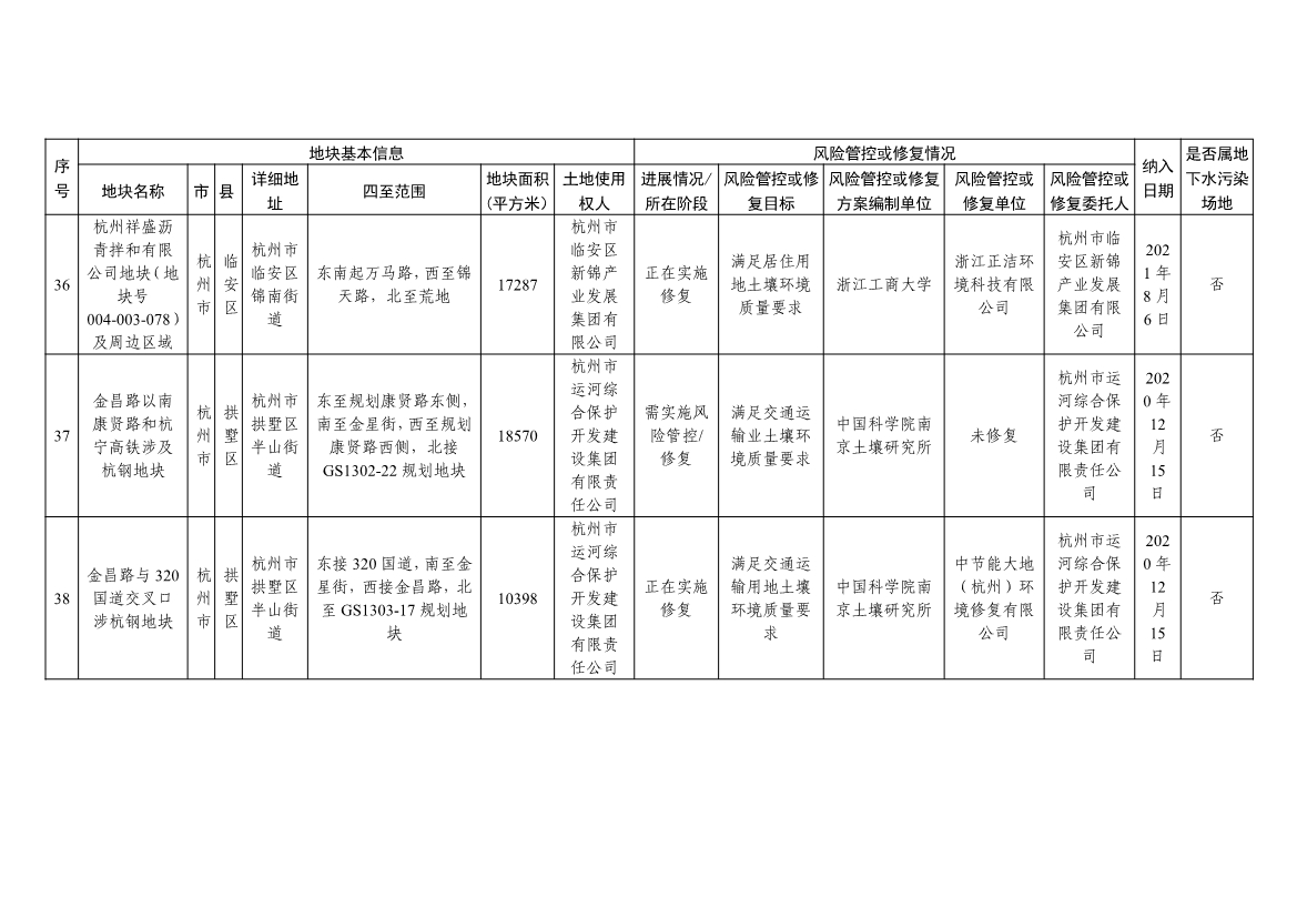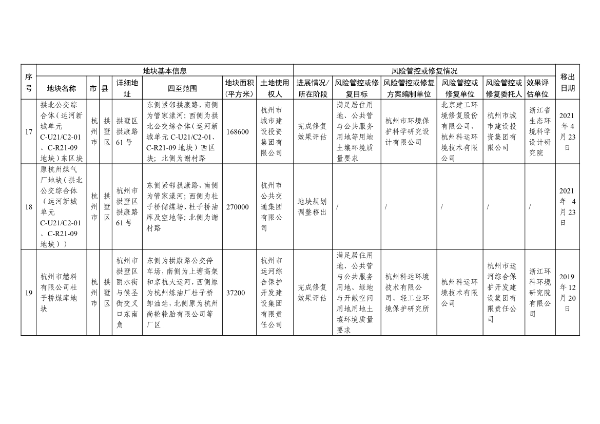 浙江省建設用地土壤污染風險管控和修復名錄及移出清單(4.24更新)