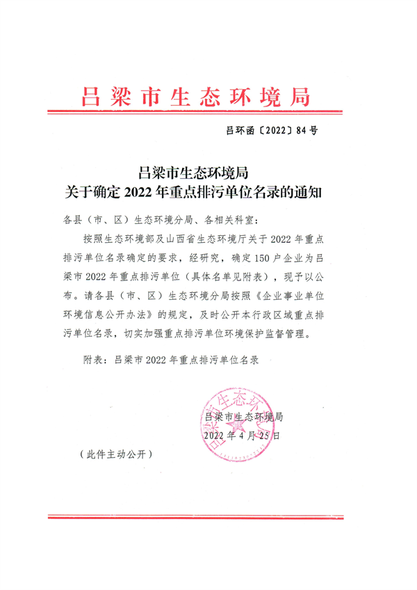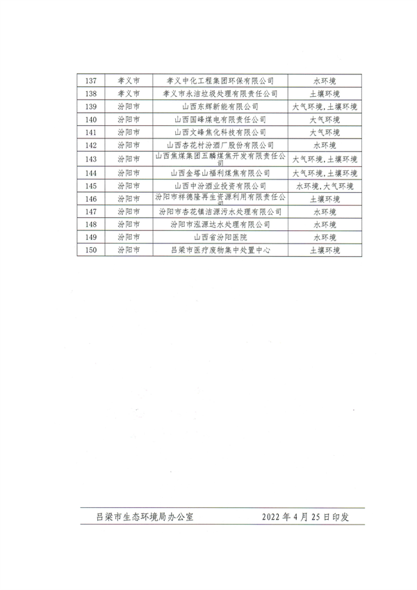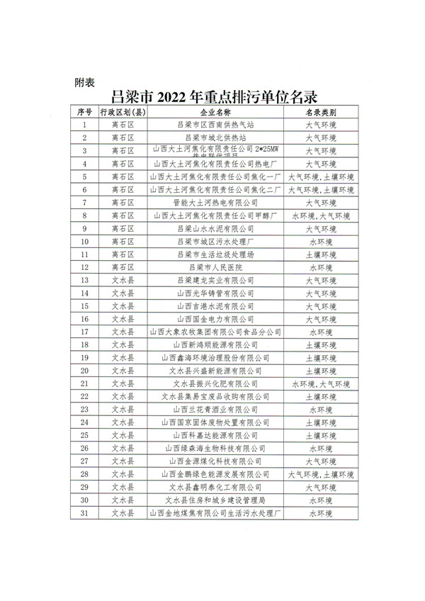 呂梁市2022年重點(diǎn)排污單位名錄公布