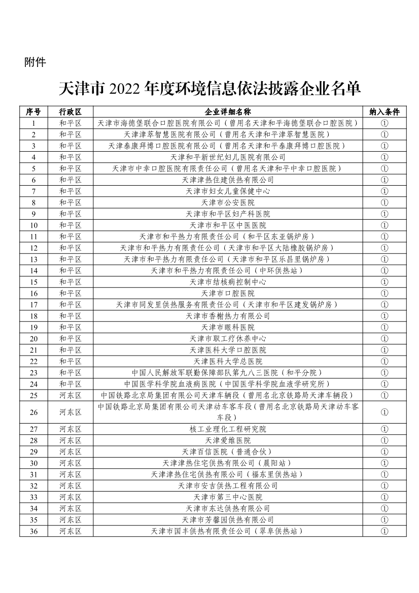 4月27日,天津市公布2022年度環(huán)境信息依法披露企業(yè)名單,詳情如下: