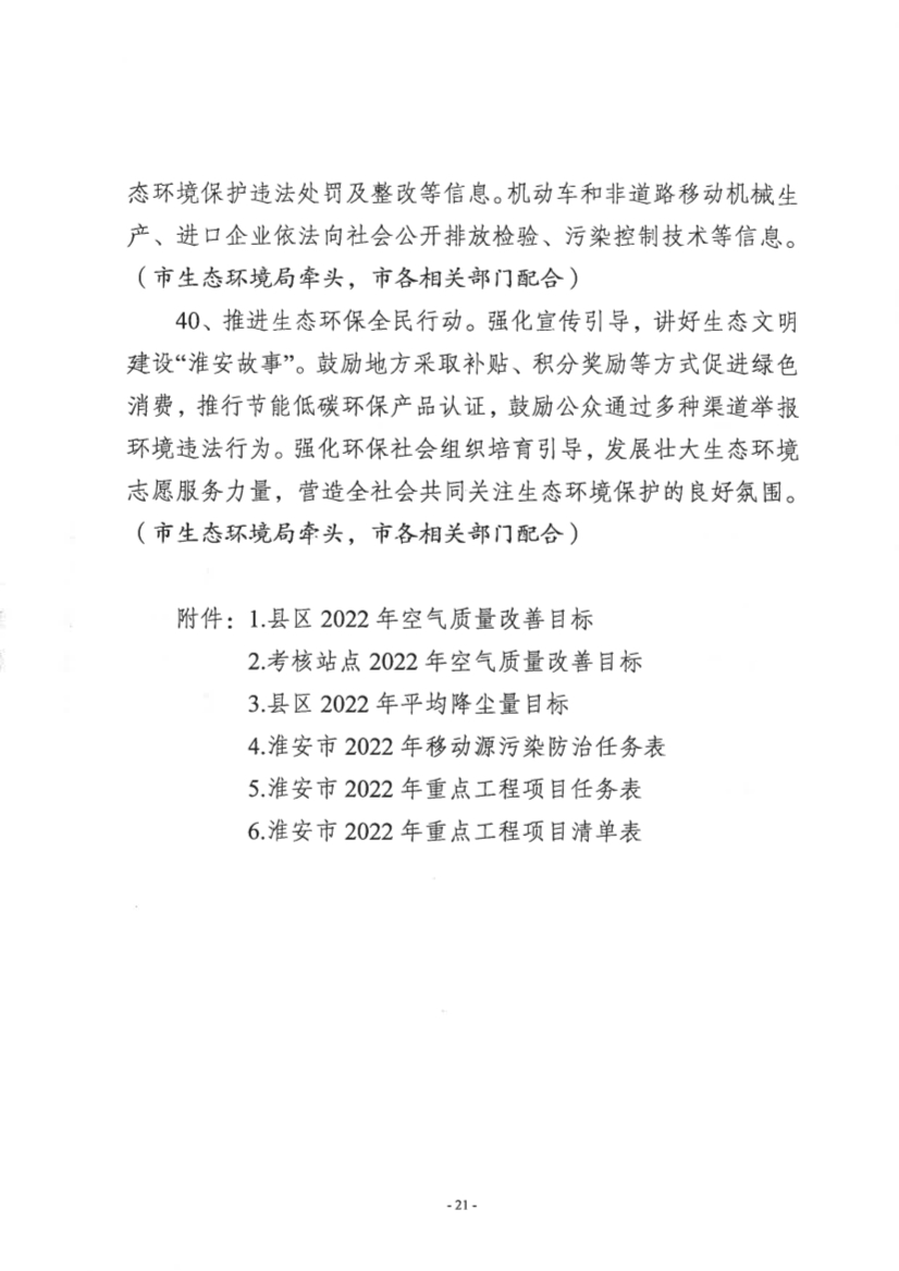 2022年淮安市大氣污染防治工作計(jì)劃