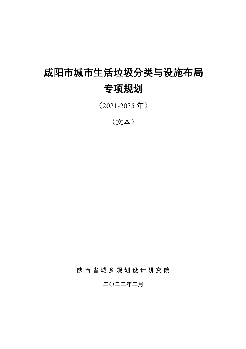 咸陽市城市生活垃圾分類與設(shè)施布局專項(xiàng)規(guī)劃 (2021-2035年)