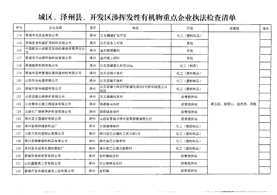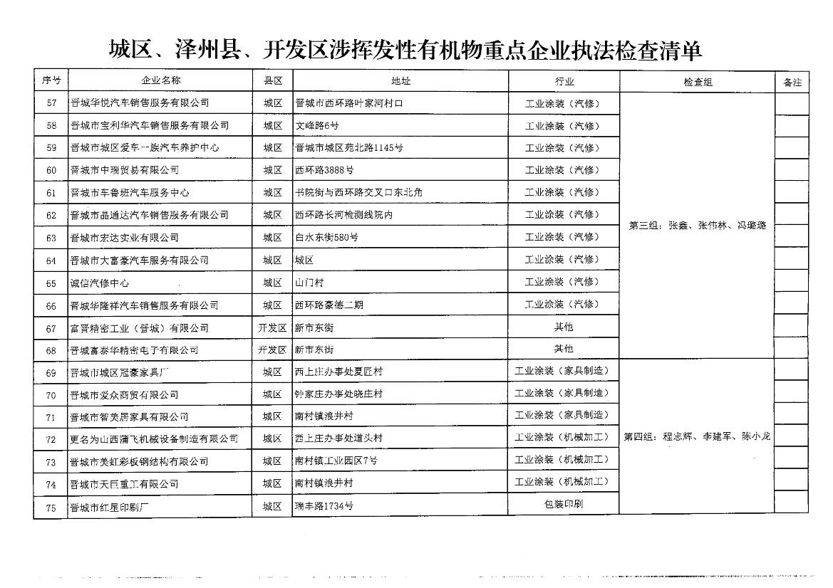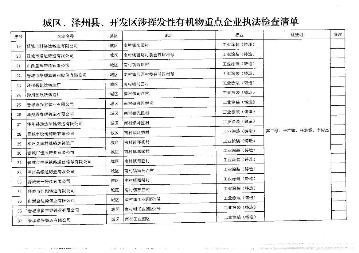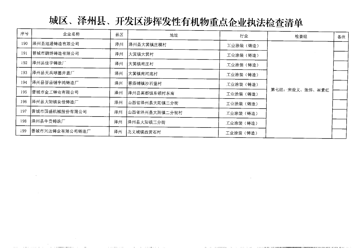 晉城關(guān)于開展<揮發(fā)性有機(jī)物和氮氧化物排放專項(xiàng)執(zhí)法檢查工作>的通知