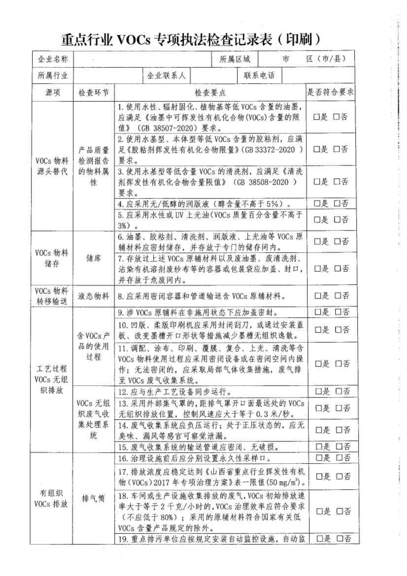 日前,晉城發(fā)布關(guān)于開展揮發(fā)性有機(jī)物和氮氧化物排放專項(xiàng)執(zhí)法檢查工作的通知。詳情如下: