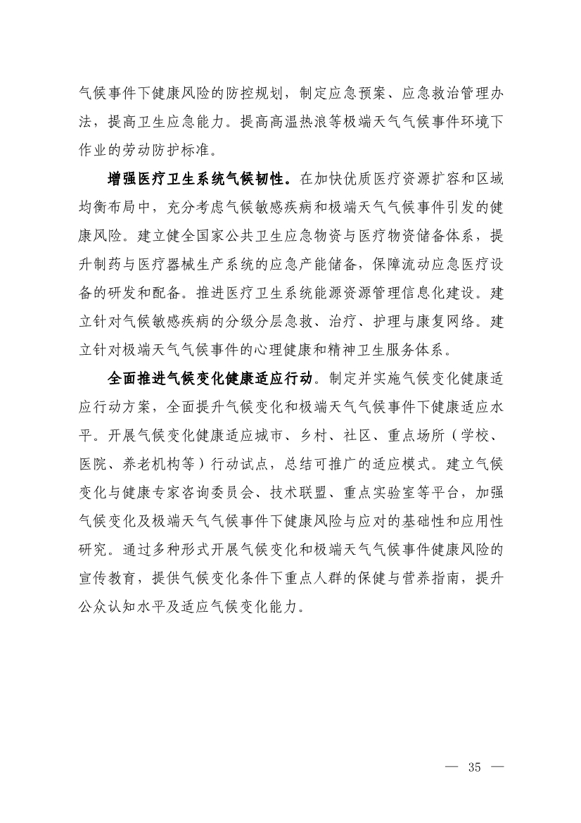 國(guó)家衛(wèi)生健康委員會(huì) 應(yīng)急管理部《國(guó)家適應(yīng)氣候變化戰(zhàn)略2035》