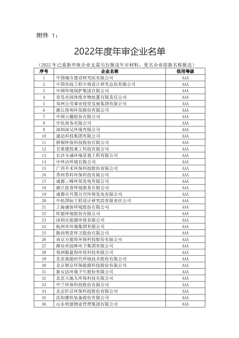 《中國城市環(huán)境衛(wèi)生協(xié)會發(fā)布了關(guān)于<開展2022年度中國環(huán)境衛(wèi)生行業(yè)企業(yè)信用評價年審工作>的通知》(中環(huán)衛(wèi)函〔2022〕25號)