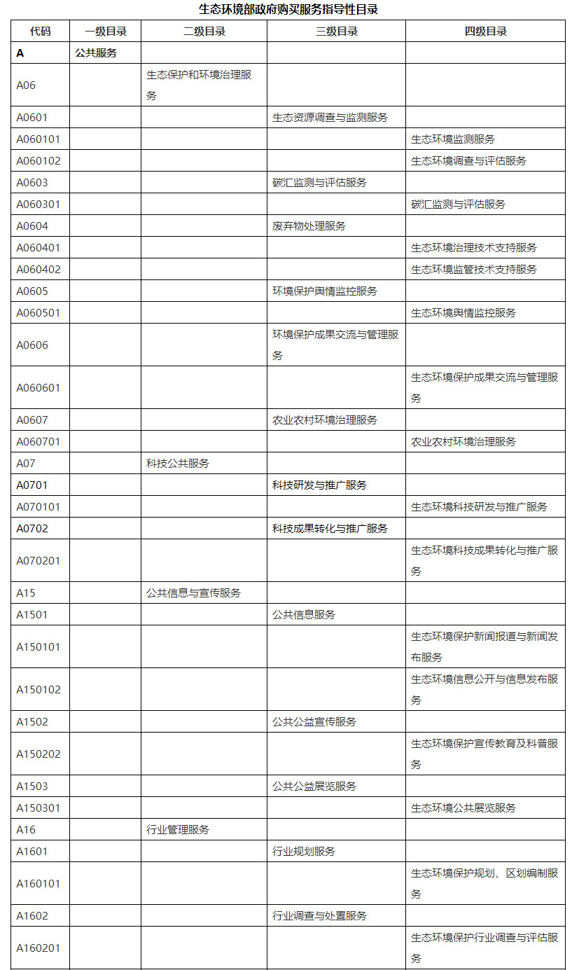 《生態(tài)環(huán)境部政府購買服務(wù)指導(dǎo)性目錄》