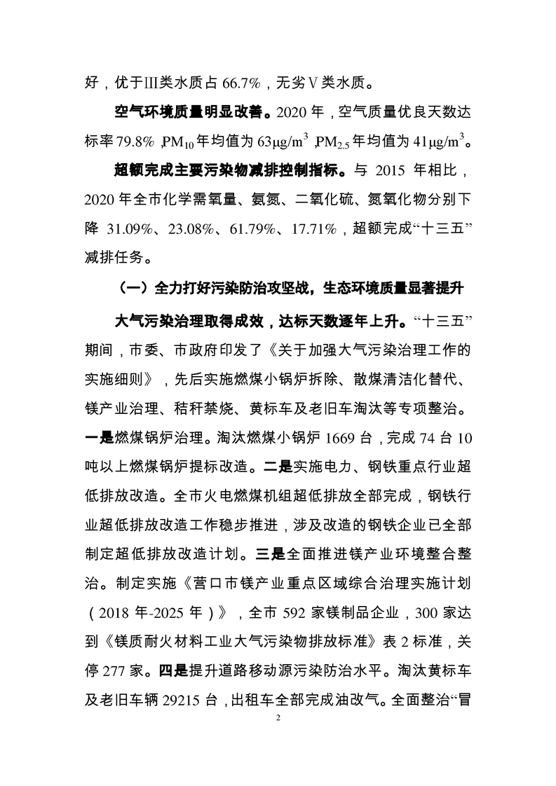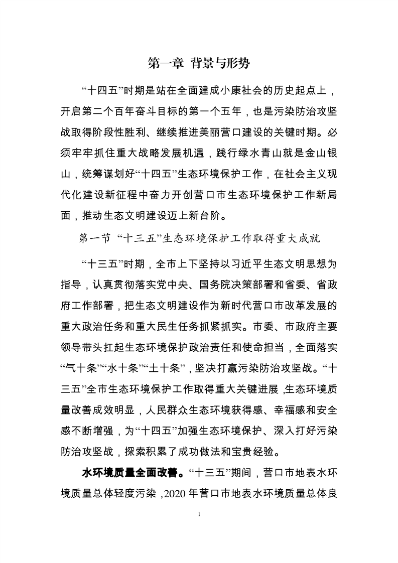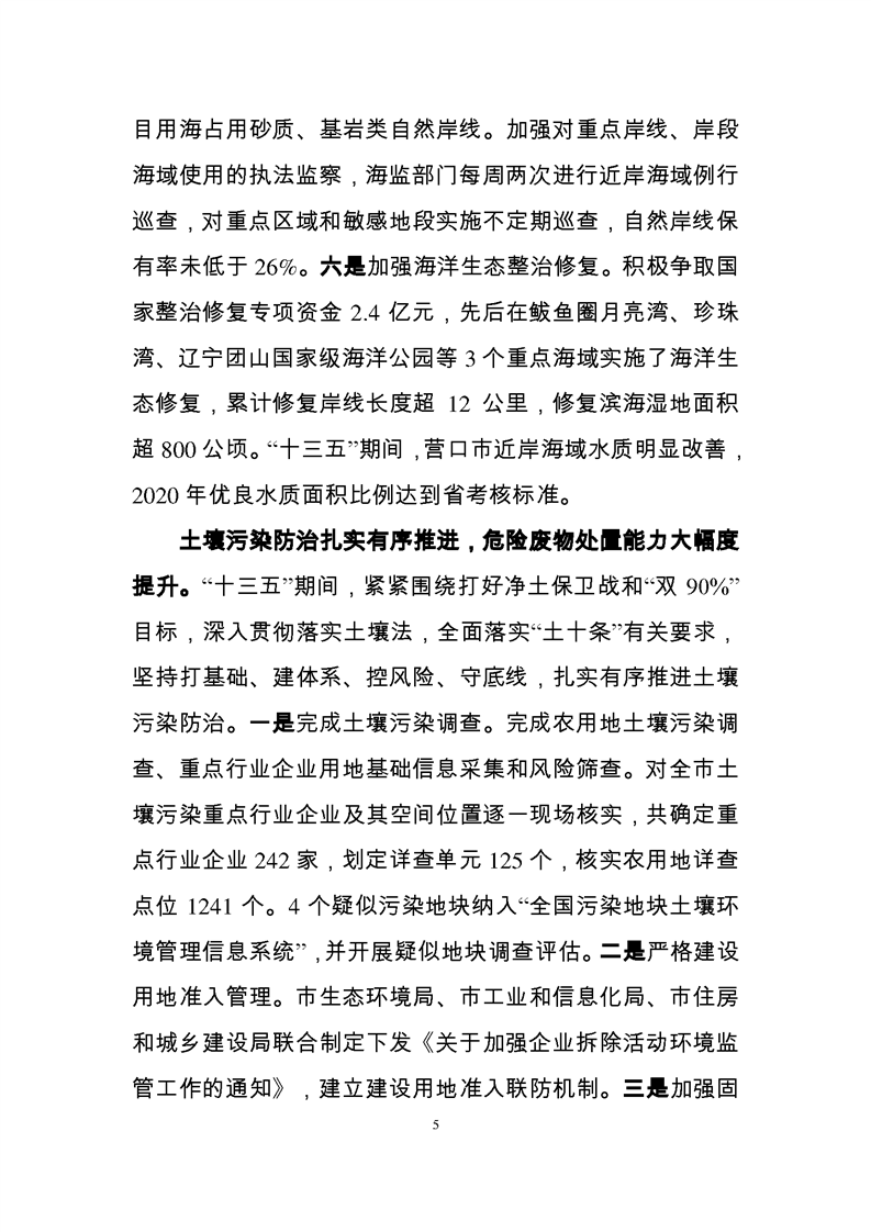 《遼寧省 印發(fā)<營口市“十四五”生態(tài)環(huán)境保護規(guī)劃>的通知》(營政辦發(fā)【2022】10號)
