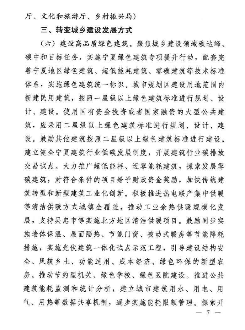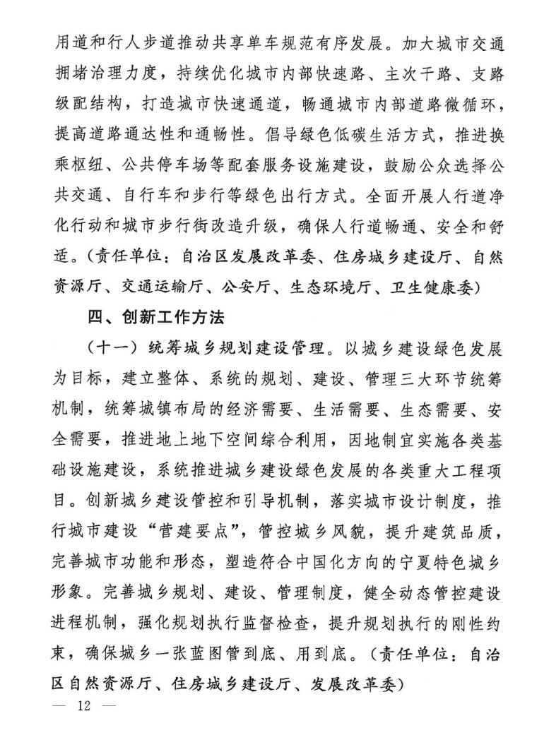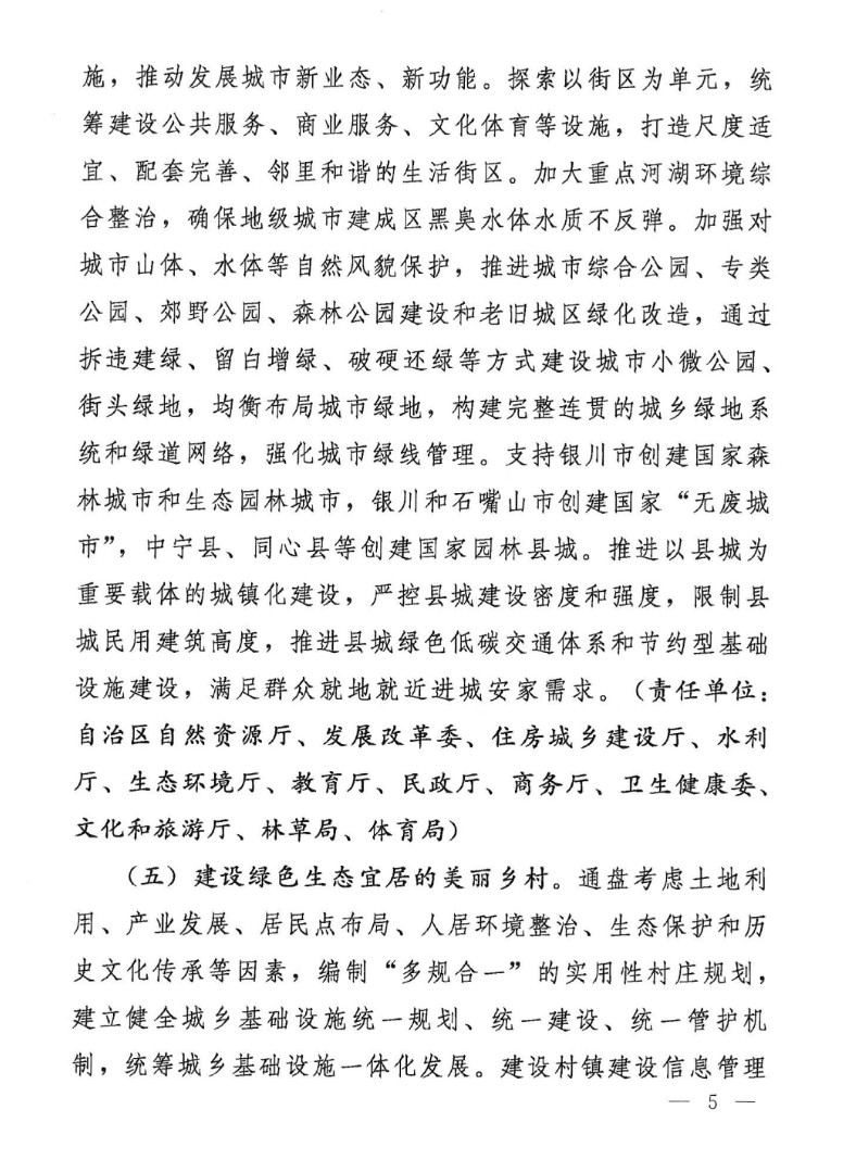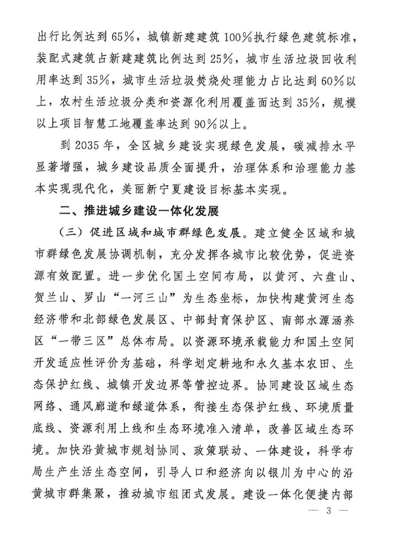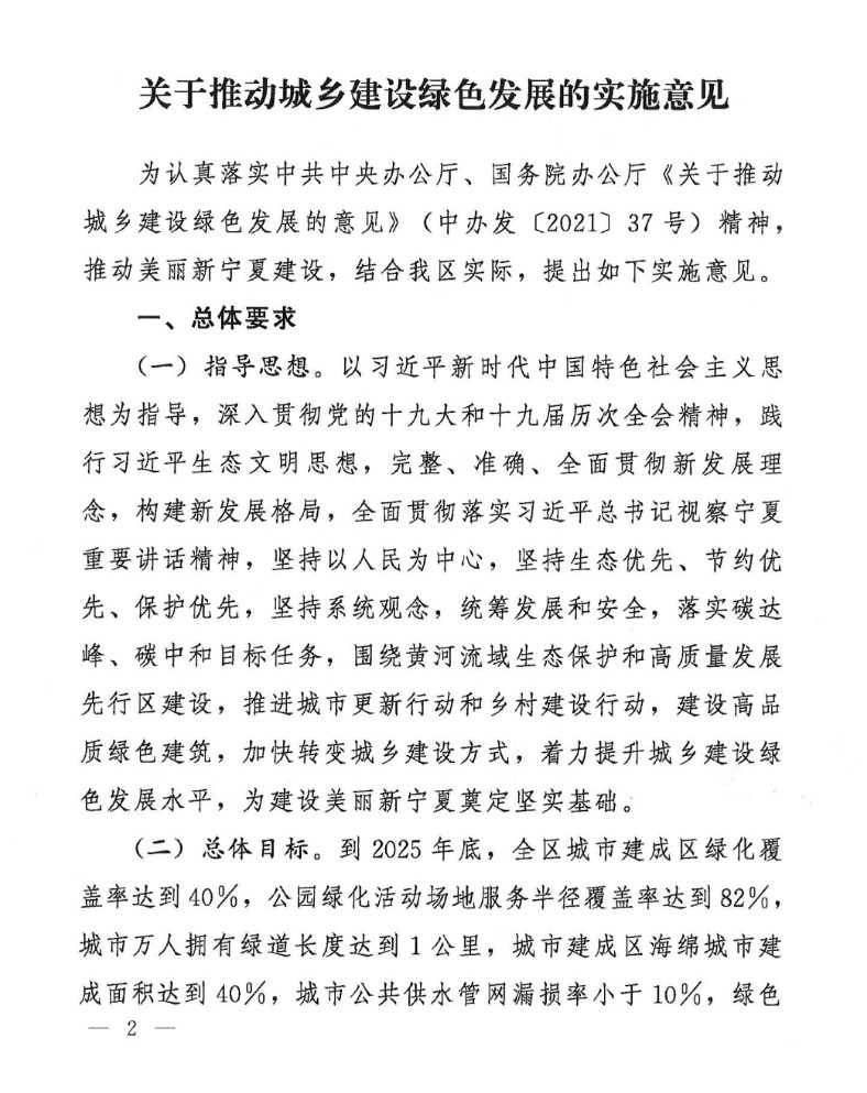 日前,寧夏回族自治區(qū)黨委辦公廳、人民政府辦公廳印發(fā)了《關(guān)于推動(dòng)城鄉(xiāng)建設(shè)綠色發(fā)展的實(shí)施意見》的通知,通知如下: