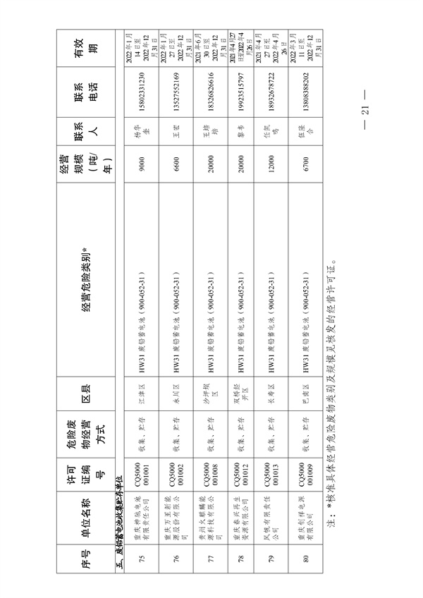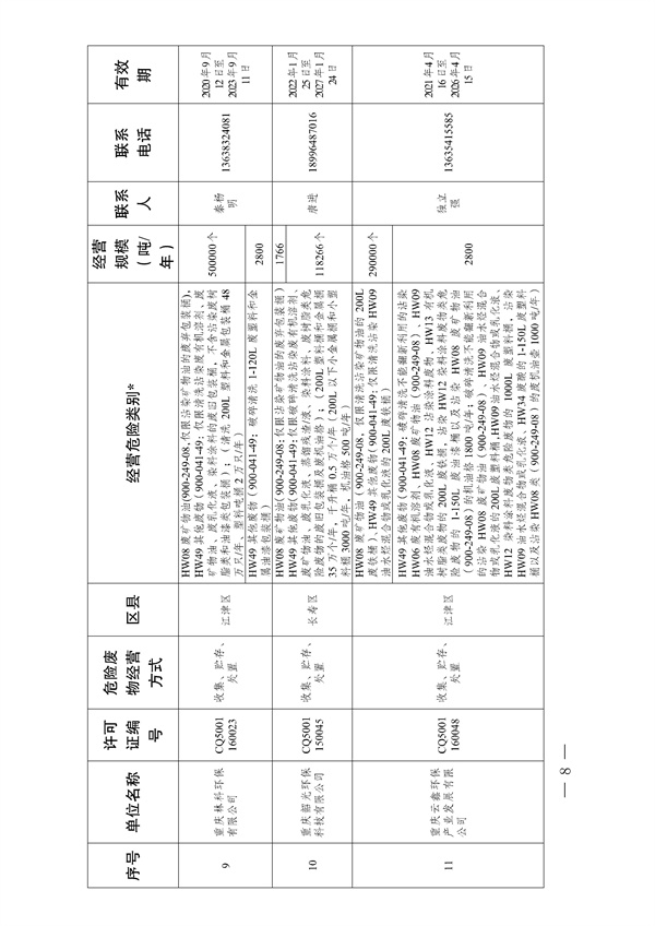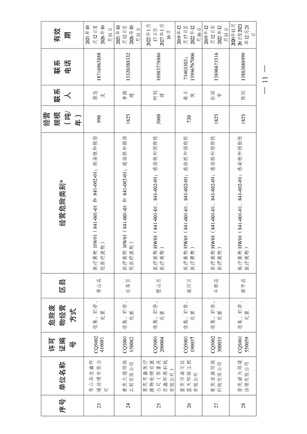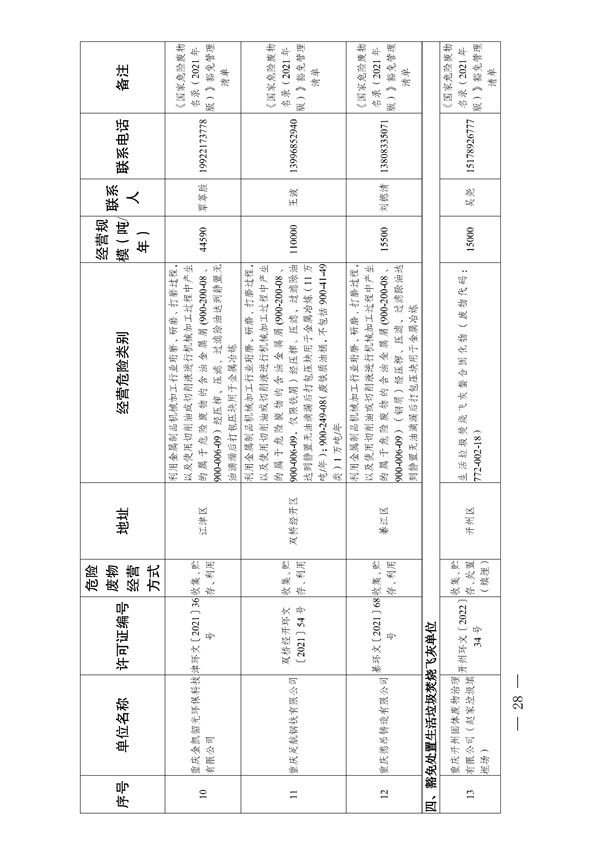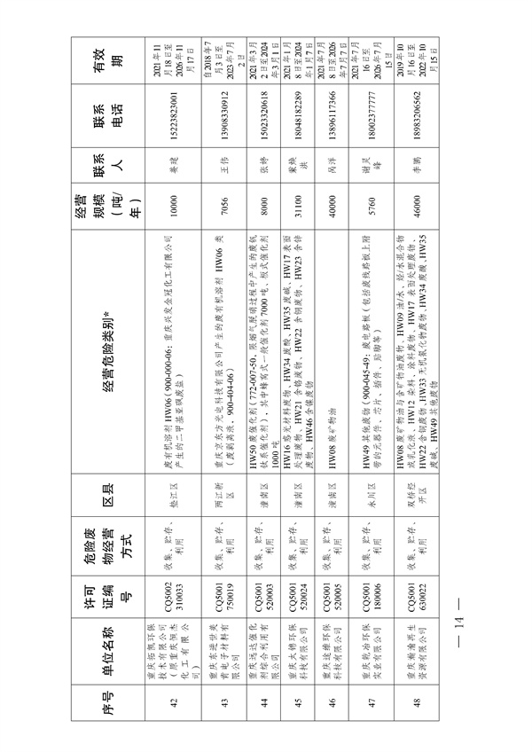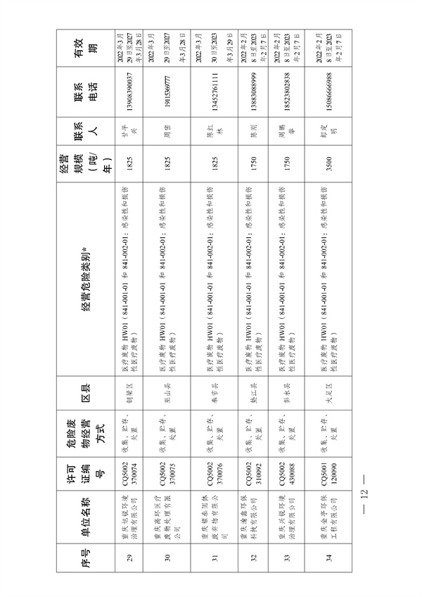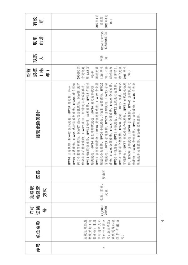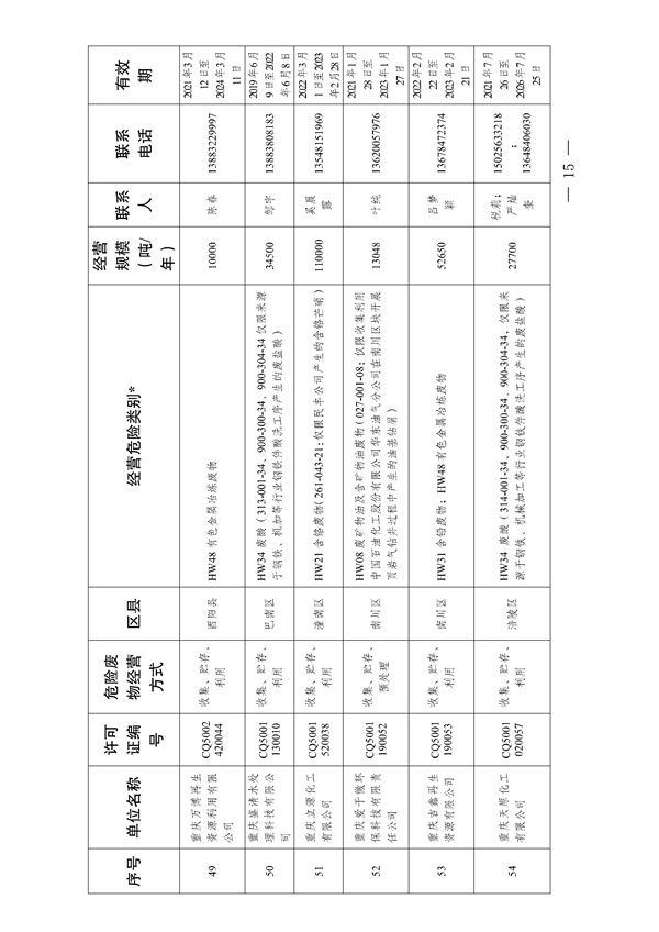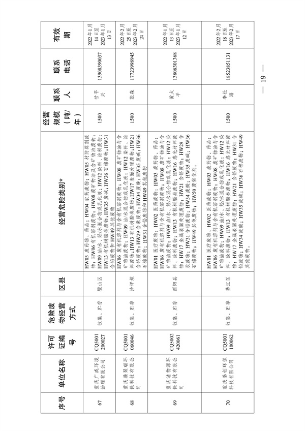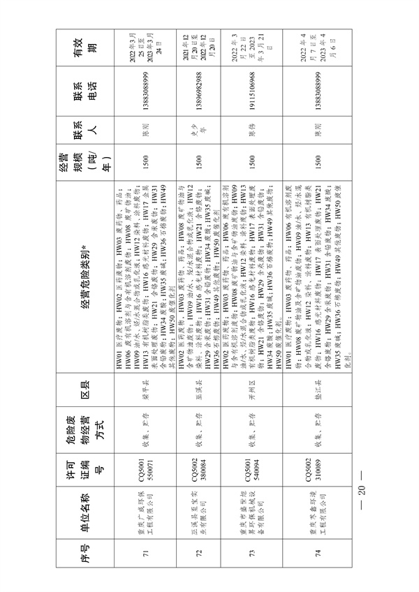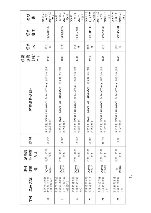 《重慶市 2022年第一季度全市危險(xiǎn)廢物經(jīng)營(yíng)許可證持證單位有關(guān)情況通報(bào)》
