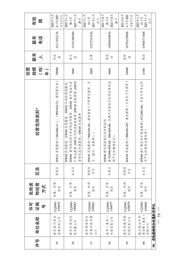 日前,重慶市生態(tài)環(huán)境局通報(bào)了2022年第一季度(截止2022年3月31日)全市危險(xiǎn)廢物經(jīng)營(yíng)許可證持證單位有關(guān)情況,其中市級(jí)80家持證單位,另有19家到期,區(qū)縣級(jí)共計(jì)27家持證單位。詳情如下:
