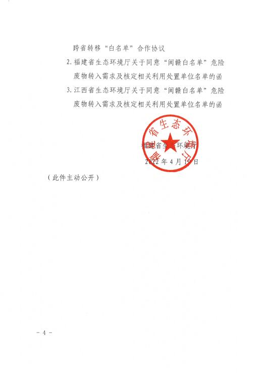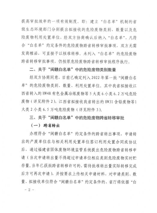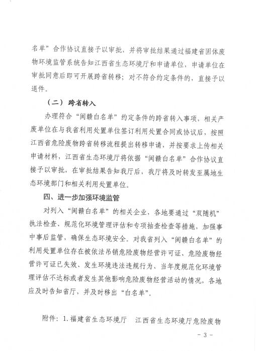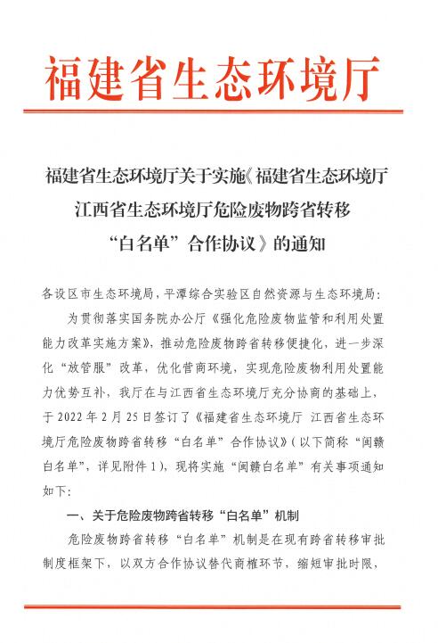 《福建省生態(tài)環(huán)境廳江西省生態(tài)環(huán)境廳危險(xiǎn)廢物跨省轉(zhuǎn)移“白名單”合作協(xié)議》