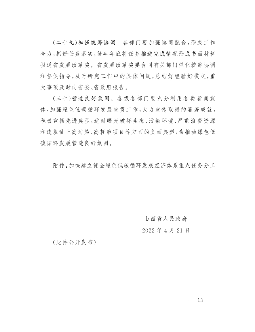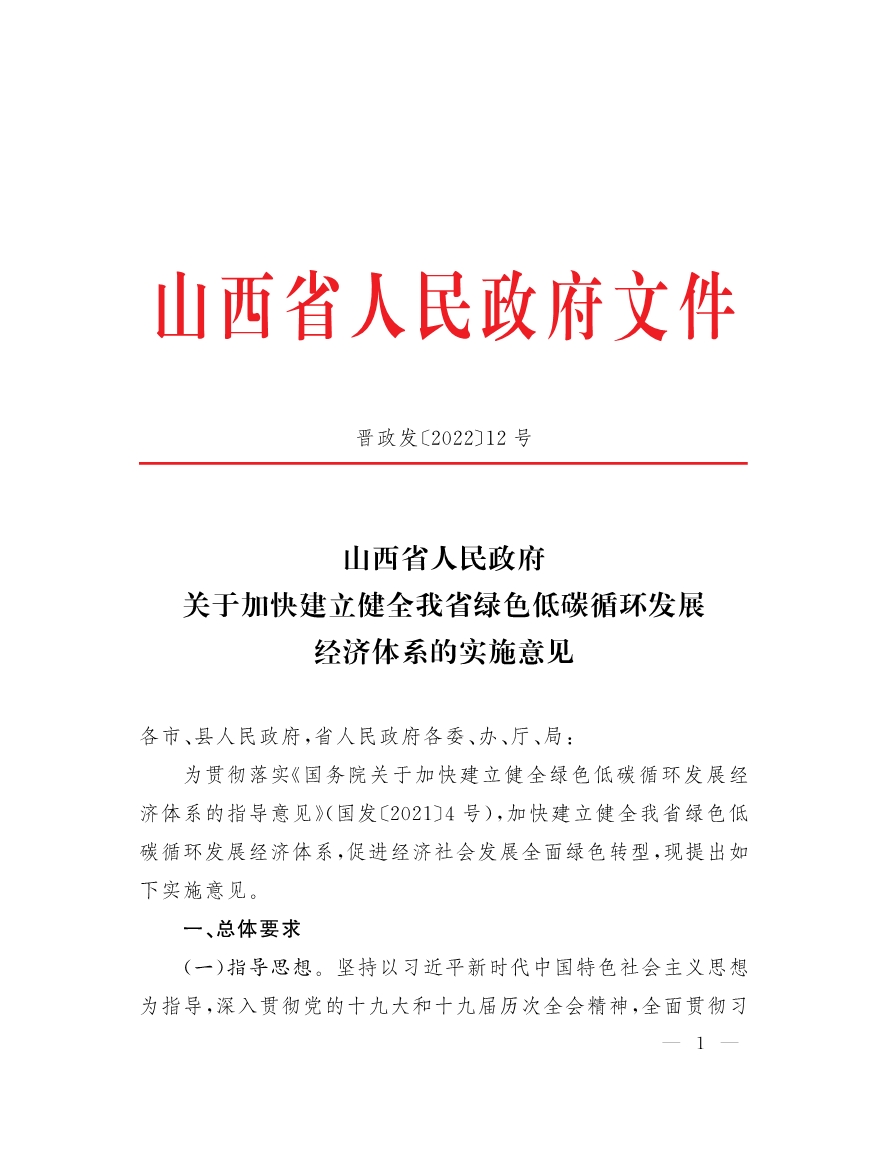《山西省 關(guān)于加快建立健全我省綠色低碳循環(huán)發(fā)展經(jīng)濟(jì)體系的實(shí)施意見》(晉政發(fā)【2022】12號(hào))
