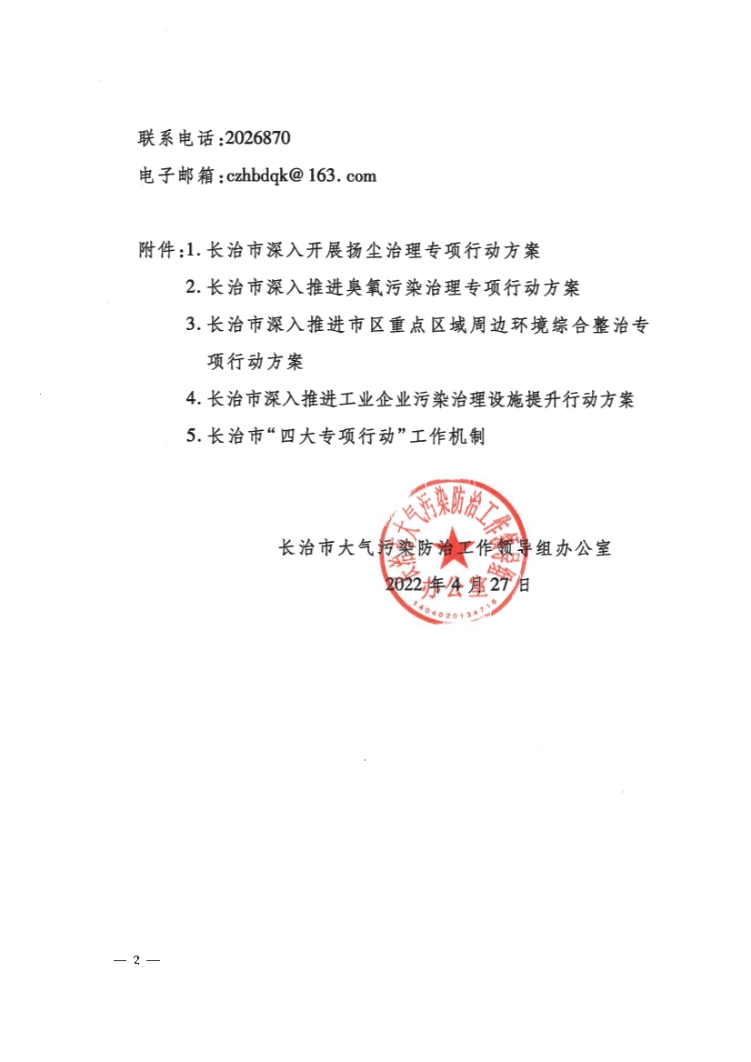 《長(zhǎng)治印發(fā)關(guān)于<緊盯空氣質(zhì)量改善開(kāi)展四大專(zhuān)項(xiàng)行動(dòng)>的通知》(長(zhǎng)氣防辦【2022】7號(hào))