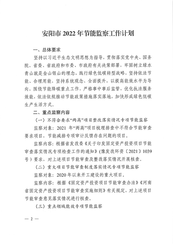 《安陽市2022年節(jié)能監(jiān)察計劃》(安發(fā)改環(huán)資【2022】106號)