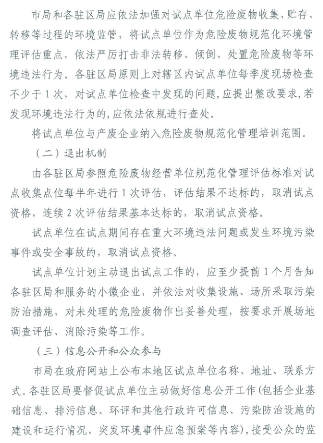 廈門市生態(tài)環(huán)境局印發(fā)廈門市小微企業(yè)危險廢物收集試點工作方案的通知,推動建立規(guī)范有序的小微企業(yè)危險廢物收集體系,探索形成一套可推廣的小微企業(yè)危險廢物收集模式,打通小微企業(yè)危險廢物收集“最后一公里”,詳情如下: