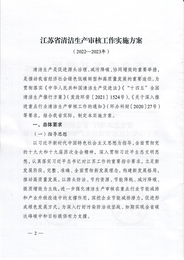 《江蘇省清潔生產(chǎn)審核工作實(shí)施方案(2022—2023年)》