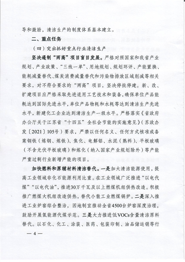日前,為進(jìn)一步強(qiáng)化清潔生產(chǎn)在促進(jìn)源頭治理、減污降碳、協(xié)同增效中的支撐作用,江蘇印發(fā)《江蘇省清潔生產(chǎn)審核工作實(shí)施方案(2022—2023年)》該規(guī)劃提出要突出抓好重點(diǎn)行業(yè)清潔生產(chǎn),堅(jiān)決遏制兩高項(xiàng)目盲目發(fā)展,推動(dòng)重點(diǎn)行業(yè)綠色低碳改造,推動(dòng)構(gòu)建綠色供應(yīng)鏈體系。詳情如下: