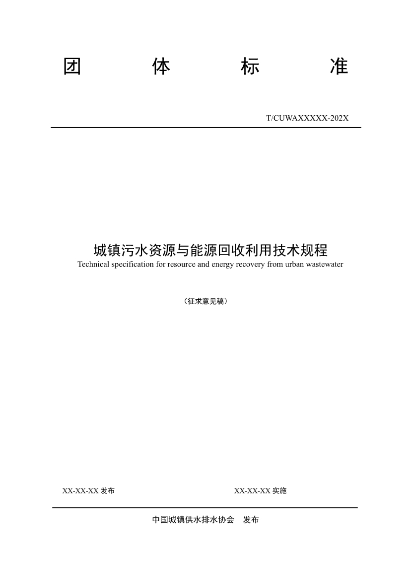 中國城鎮(zhèn)供水排水協(xié)會關于征求團體標準《城鎮(zhèn)污水資源與能源回收利用技術規(guī)程(征求意見稿)》意見的通知