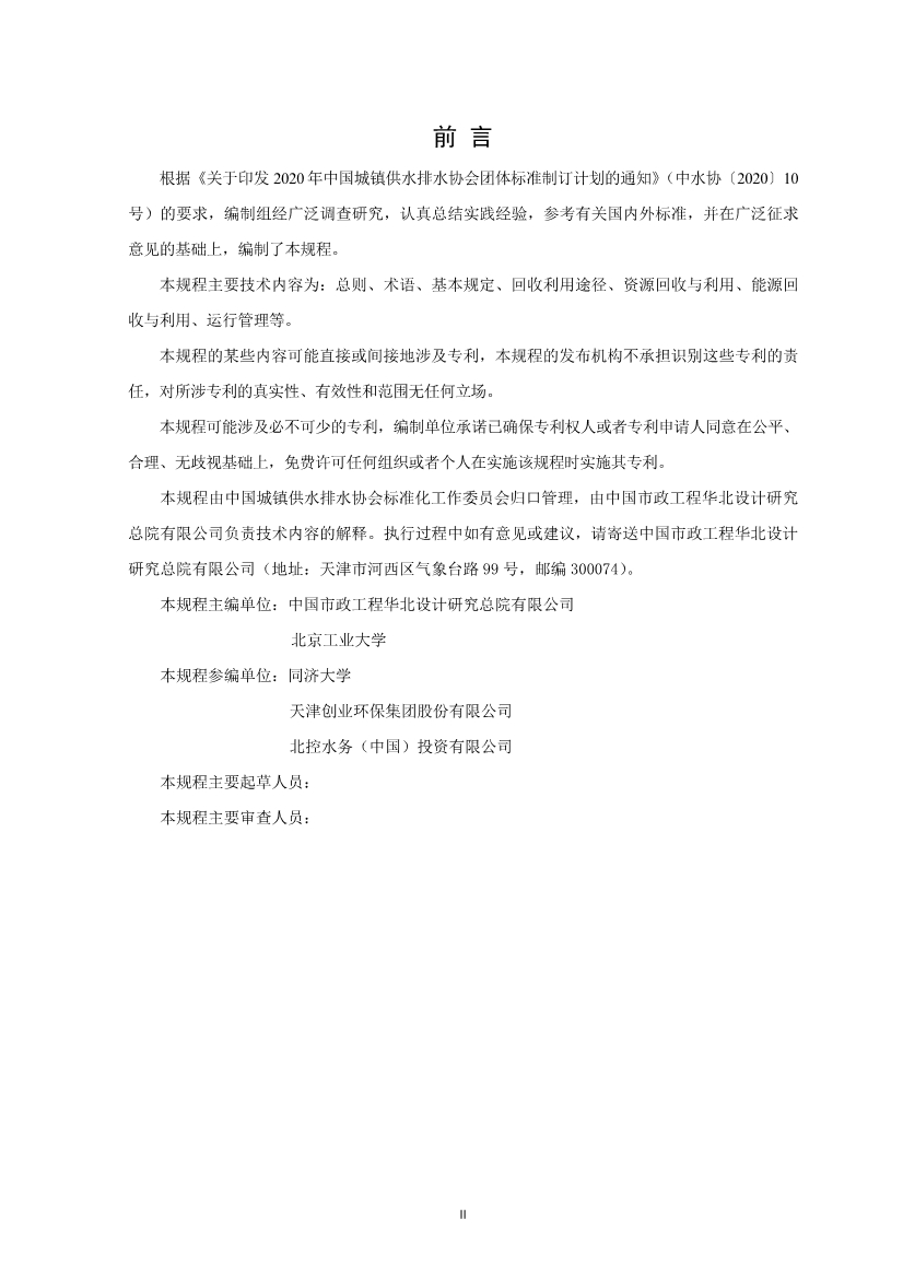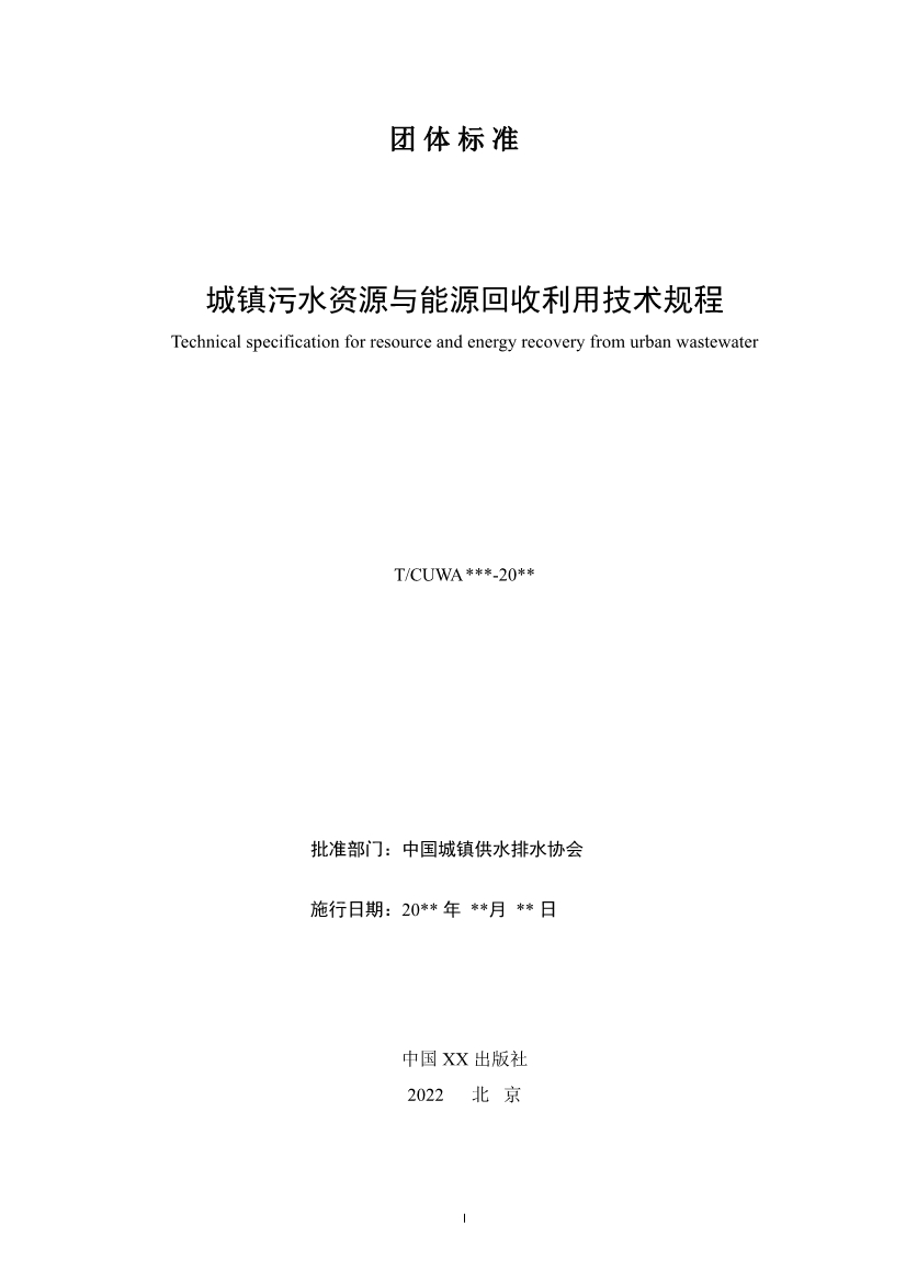 《 城鎮(zhèn)污水資源與能源回收利用技術規(guī)程(征求意見稿)》
