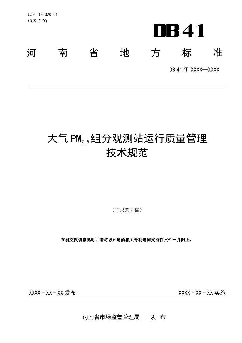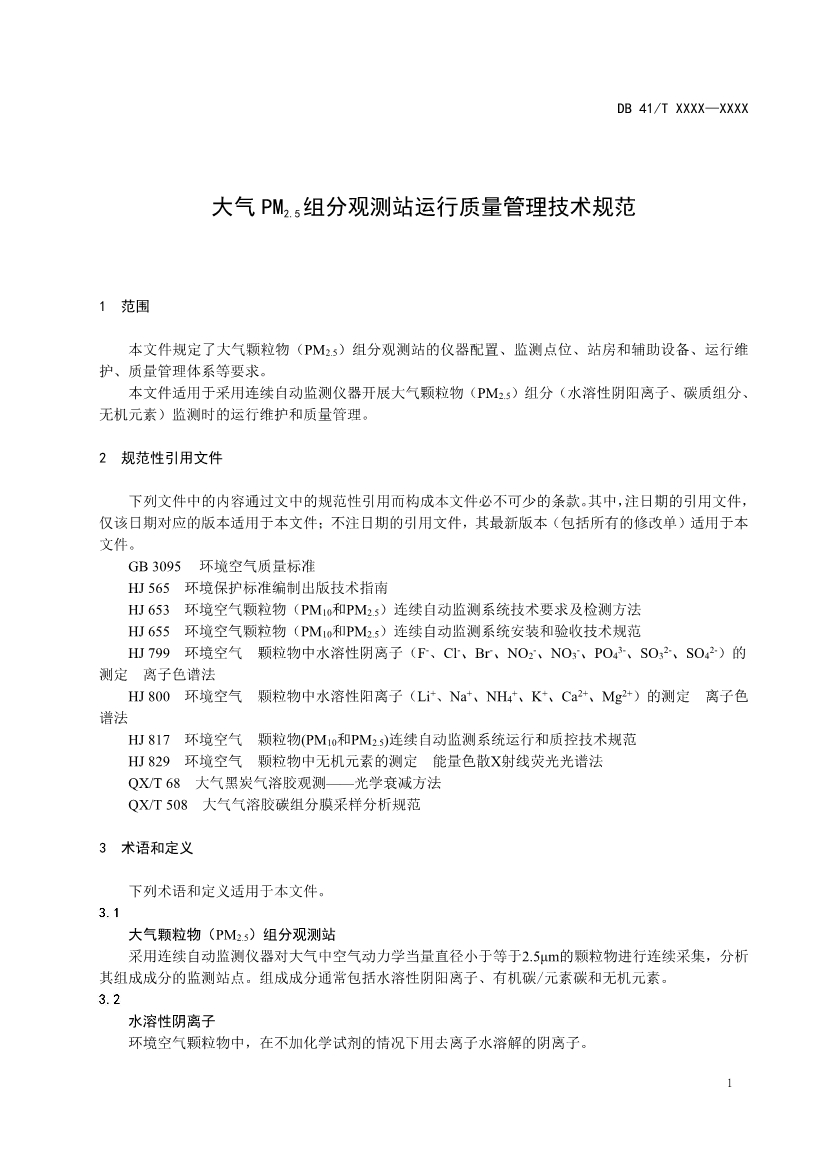 《河南省大氣PM2.5組分觀測(cè)站運(yùn)行質(zhì)量管理技術(shù)規(guī)范》