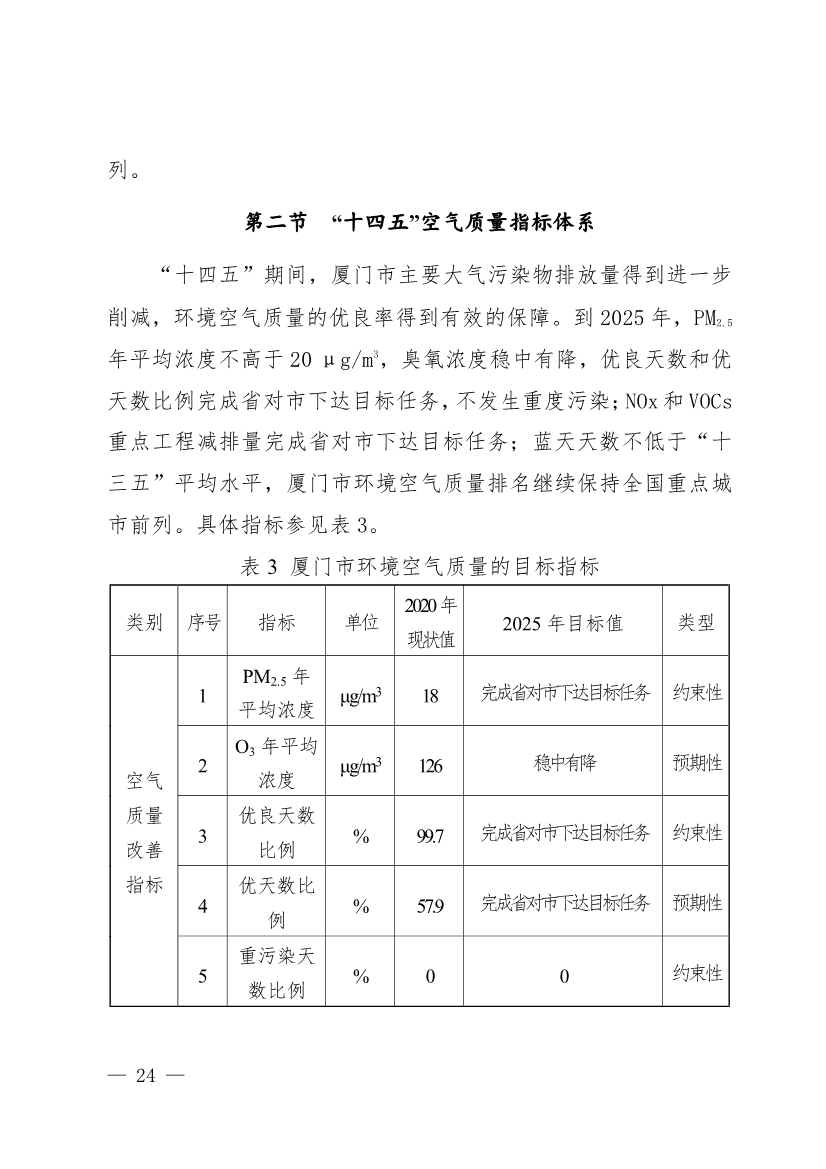 《廈門市“十四五”空氣質(zhì)量改善規(guī)劃》