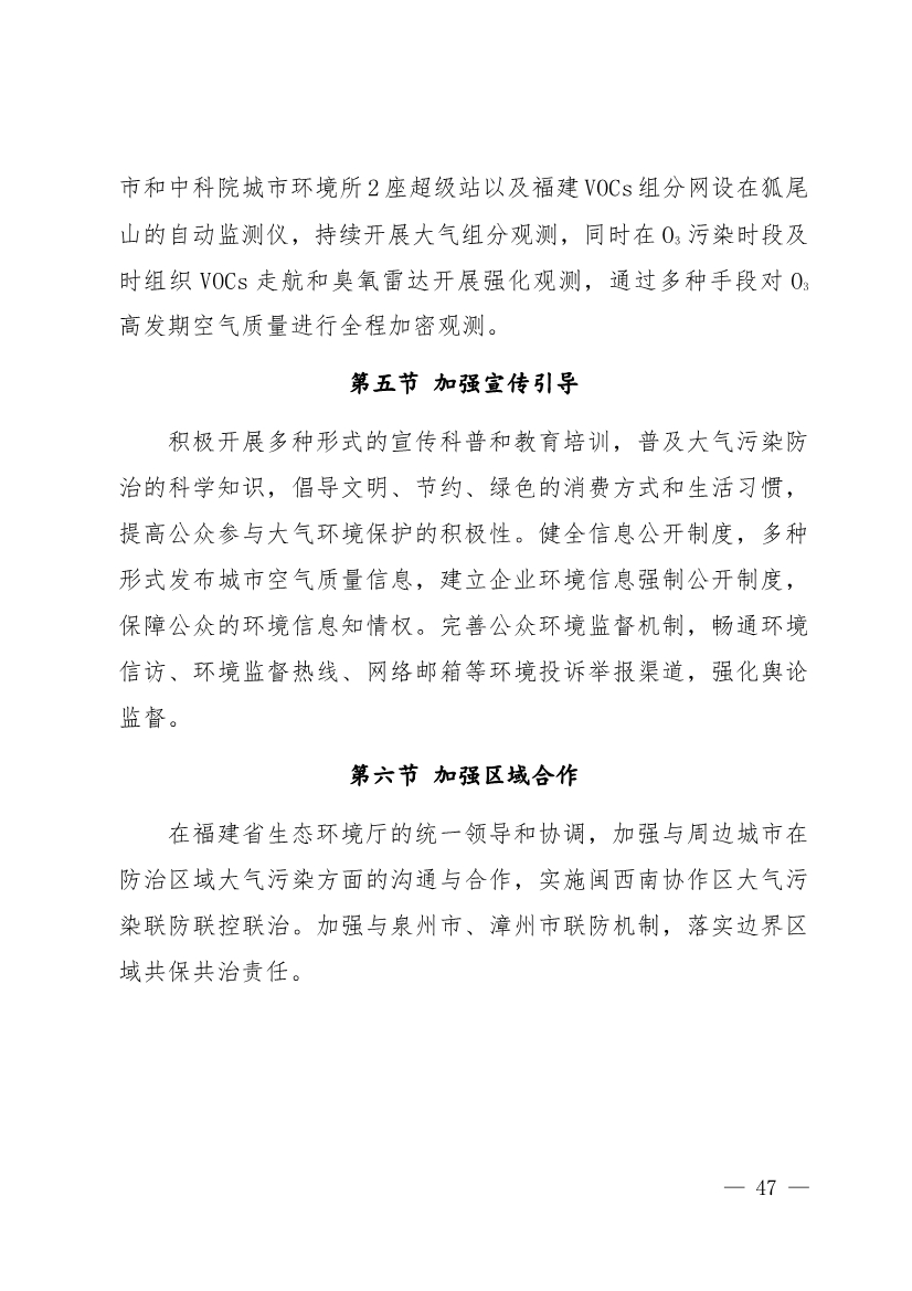 “十四五”期間,廈門市將以不斷鞏固“十三五”大氣環(huán)境 綜合整治成效為出發(fā)點,以完善大氣污染防治工作和管理機制為 重點,以各類 VOCs 和移動源 NOX 治理為主要抓手,不斷推進 PM2.5 和 O3 的協(xié)同控制,深化大氣污染物和溫室氣體排放的協(xié)同減排, 持續(xù)改善環(huán)境空氣質(zhì)量,努力實現(xiàn)減污降碳協(xié)同增效。 到 2025 年,各空氣污染物濃度持續(xù)優(yōu)于國家環(huán)境空氣質(zhì)量二 級標(biāo)準(zhǔn),PM2.5 和 NO2 濃度進一步降低,O3 濃度上升趨勢得到有效 遏制,全市空氣質(zhì)量綜合指數(shù)排名在全國 168 個重點城市中繼續(xù) 保持前列,讓藍天白云、繁星閃爍常在。