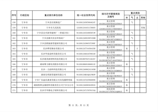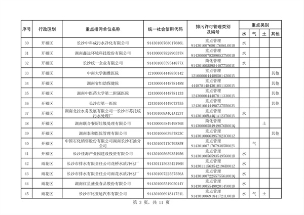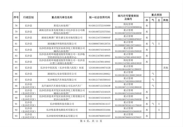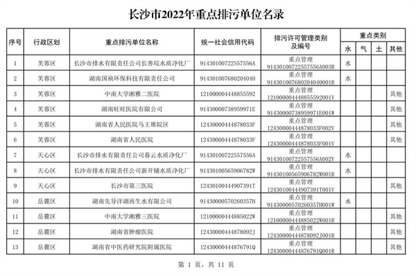 日前,長沙公布2022年重點排污單位名錄。涉及大氣環(huán)境、水環(huán)境等重點排污單位171家。詳情如下: