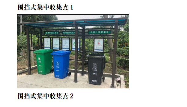 3.1.1 集中收集點(diǎn)設(shè)置形式因地制宜。根據(jù)場(chǎng)地條件和周邊 環(huán)境要求,可采用封閉式、圍擋式或開(kāi)放式。