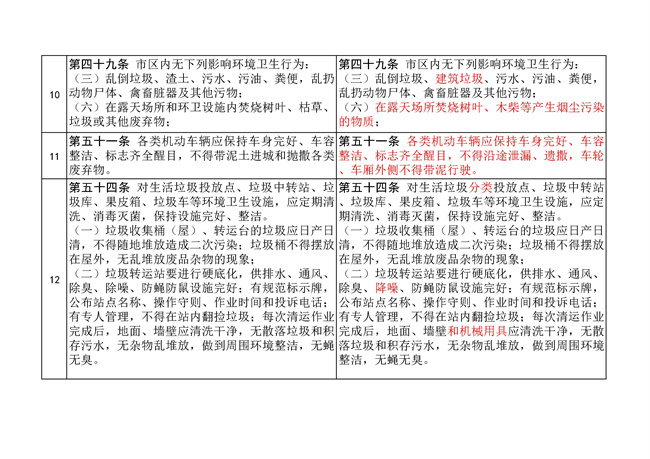 第四十九條市區(qū)內(nèi)無下列影響環(huán)境衛(wèi)生行為: