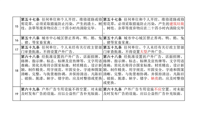 第五十七條任何單位和個人開挖、維修道路或修剪花草,必須采取措施防止污染,產(chǎn)生的建筑垃圾、樹枝、雜草等廢棄物應(yīng)在二十四小時(shí)內(nèi)清除完畢。