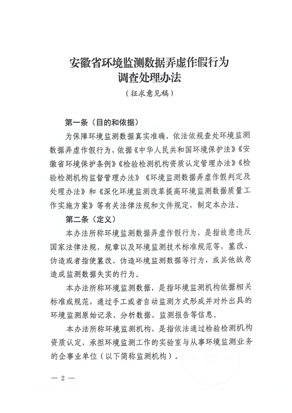 安徽省環(huán)境監(jiān)測數(shù)據(jù)弄虛作假行為調(diào)查處理辦法(征求意見稿)