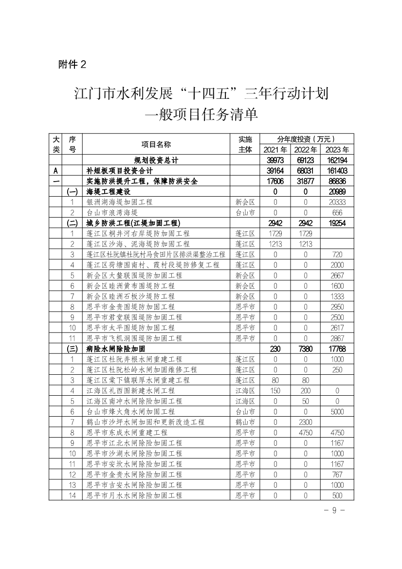 江門市水利發(fā)展“十四五”規(guī)劃三年行動(dòng)計(jì)劃(2021-2023年)