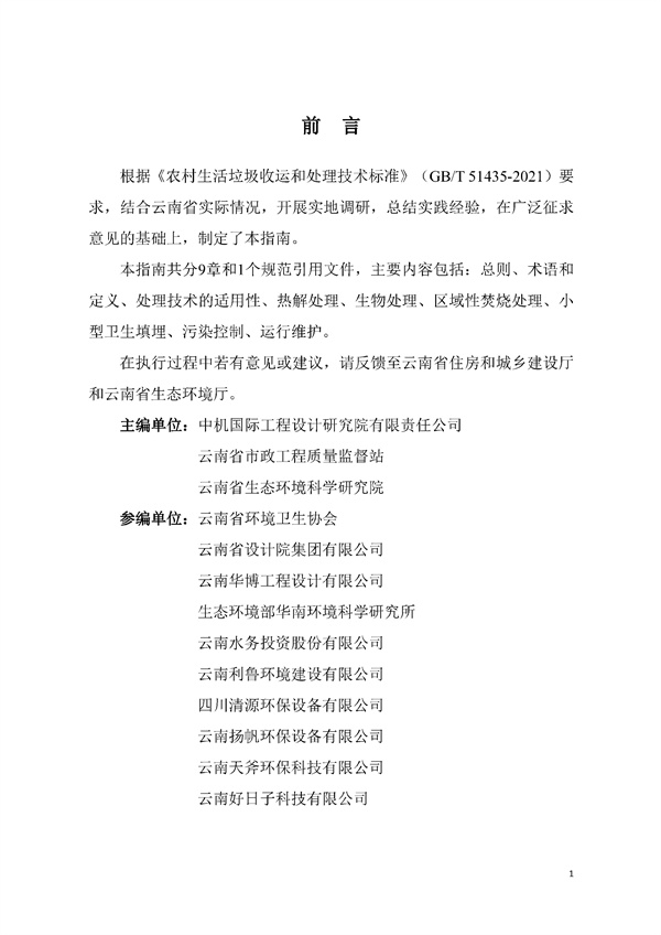 《云南省農(nóng)村生活垃圾處理技術(shù)指南(試行)》