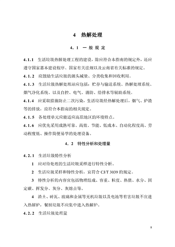 日前,云南省印發(fā)了《云南省農(nóng)村生活垃圾處理技術(shù)指南(試行)》,該指南指出:鼓勵(lì)采用技術(shù)成熟、經(jīng)濟(jì)合理、易控易管、節(jié)能低碳的農(nóng)村生活垃圾處理工藝,介紹了區(qū)域性焚燒處理、小型衛(wèi)生填埋處理、熱解處理、生物處理等方式。同時(shí)主張采取城鄉(xiāng)一體化為主、鎮(zhèn)村一體化、就地就近處理為輔的處理方式。在區(qū)域性生活垃圾焚燒處理方面,主張采用生活垃圾連續(xù)焚燒方式,焚燒線年可利用時(shí)間不應(yīng)小于 8000h,焚燒系統(tǒng)設(shè)計(jì)服務(wù)期限不應(yīng)低于20 年,并提出應(yīng)實(shí)現(xiàn)焚燒爐運(yùn)行狀況在線監(jiān)測,監(jiān)測項(xiàng)目至少包括焚燒爐燃燒溫度、爐膛壓力、煙氣出口氧氣含量和一氧化碳含量,應(yīng)在顯著位置設(shè) 立標(biāo)牌,自動(dòng)顯示焚燒爐運(yùn)行工況的主要參數(shù)和煙氣主要污染物的在線 監(jiān)測數(shù)據(jù)。詳情如下: