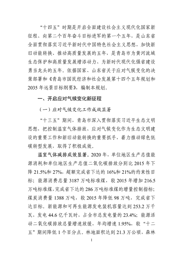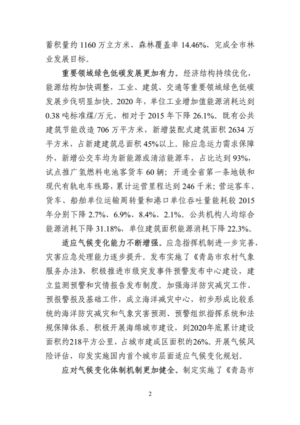 《青島市“十四五”應(yīng)對氣候規(guī)劃》