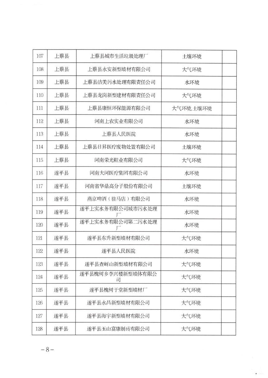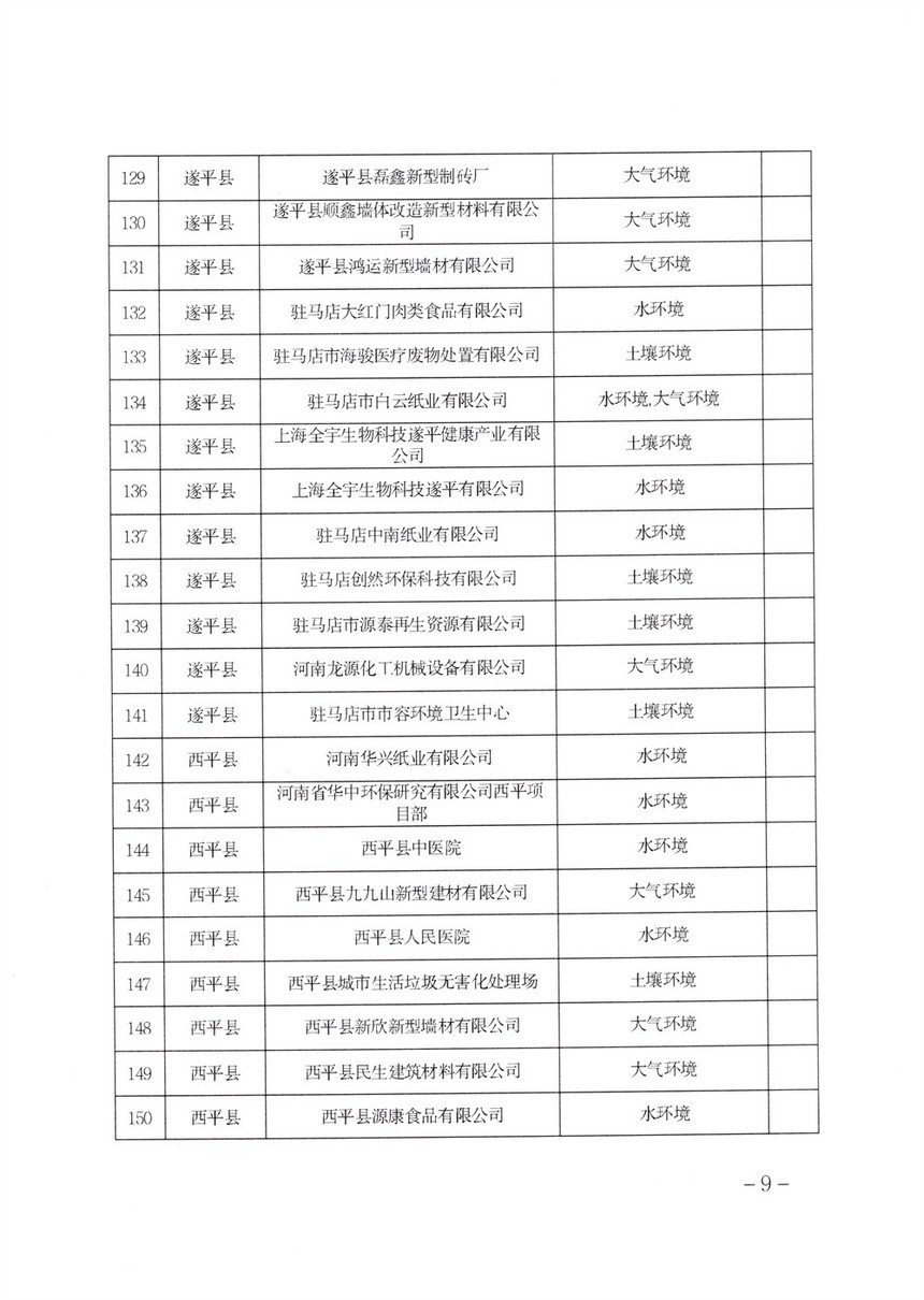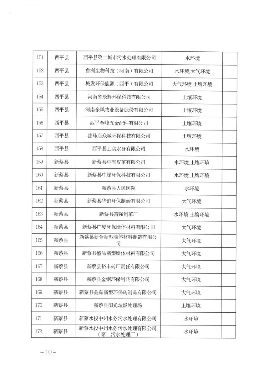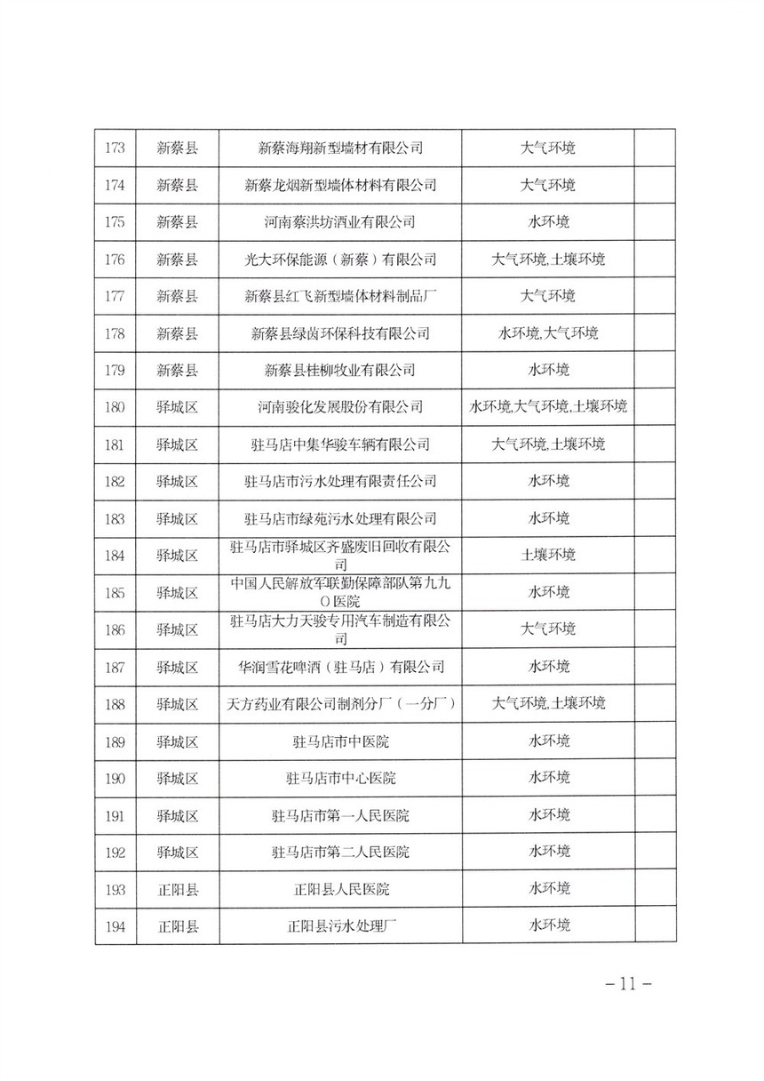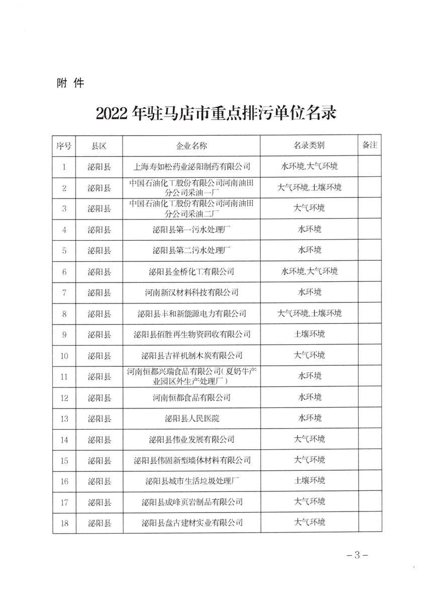 《2022年駐馬店市重點(diǎn)排污單位名錄》