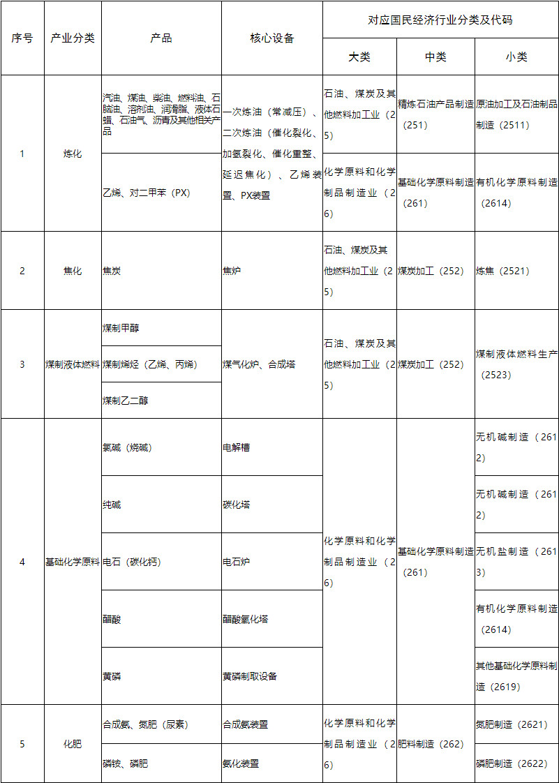 說明:1.“兩高”項(xiàng)目范圍以產(chǎn)品和核心設(shè)備界定;