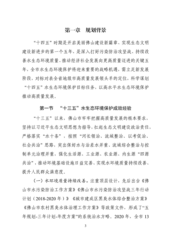 《佛山市水生態(tài)環(huán)境保護(hù)“十四五”規(guī)劃》
