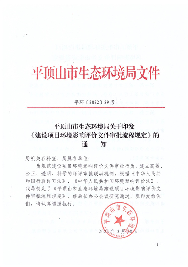 平環(huán)[2022]29號 平頂山市生態(tài)環(huán)境局關(guān)于印發(fā)《建設(shè)項目環(huán)境影響評價審批流程規(guī)定》的通知