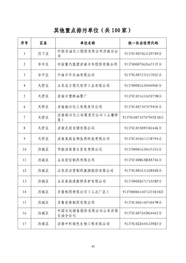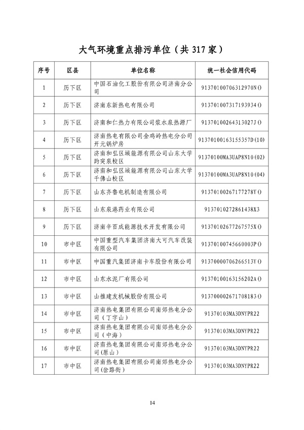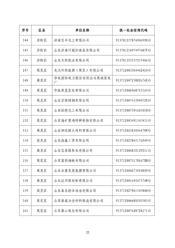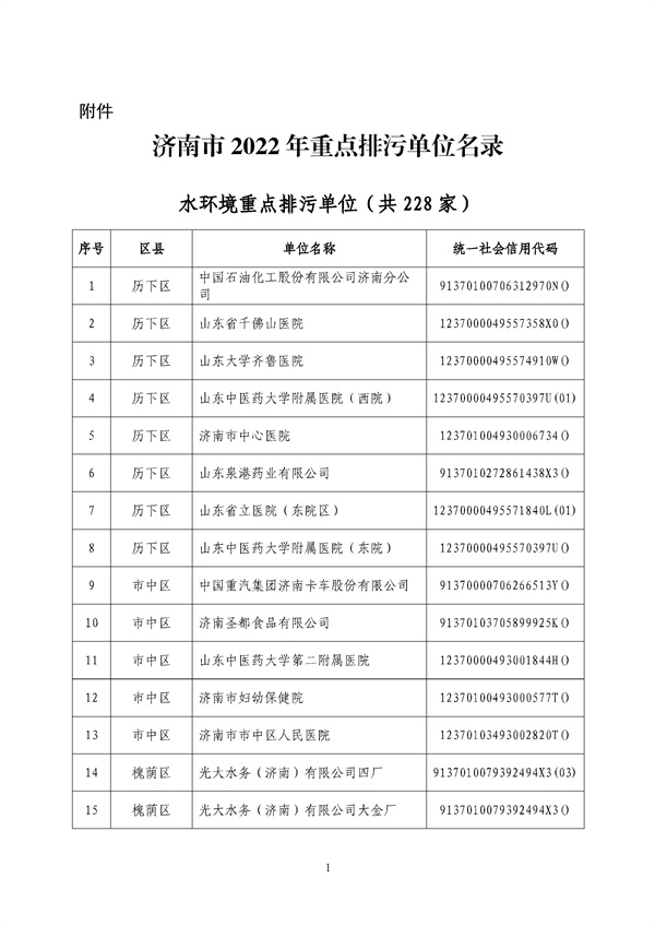 《濟南市2022年重點排污單位名錄》