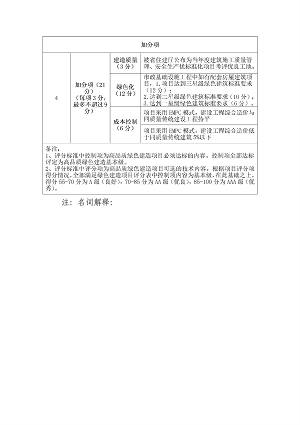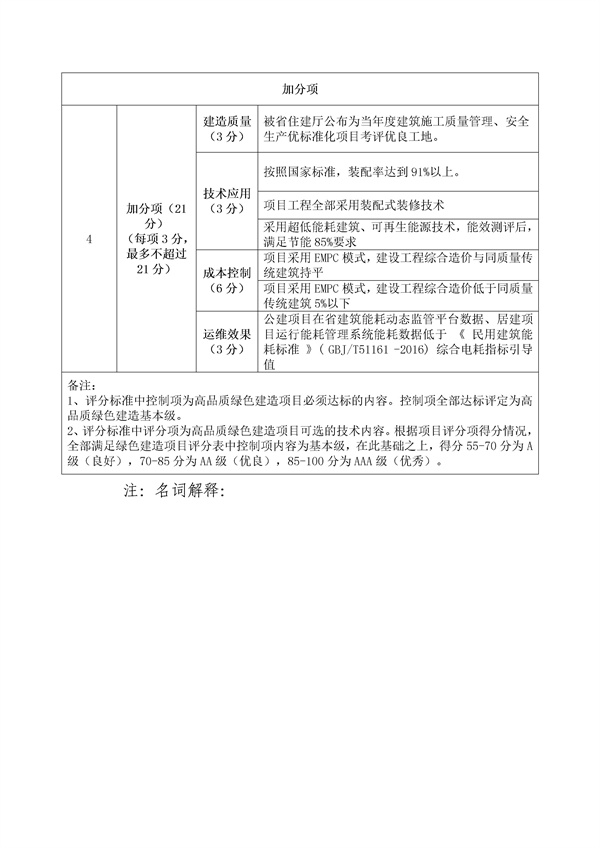 附:1.房屋建筑工程綠色建造項目評分表