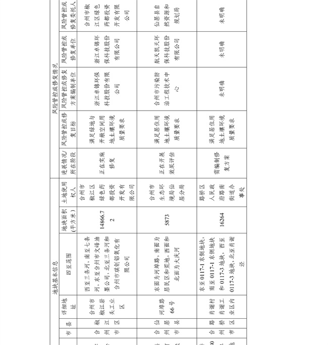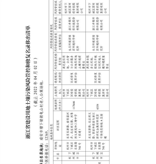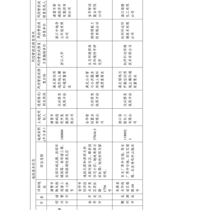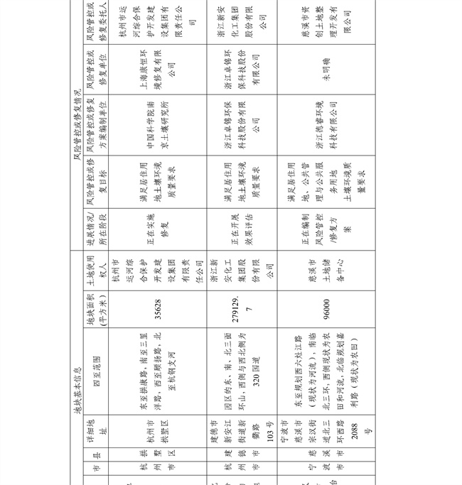 《浙江省建設用地土壤污染風險管控和修復名錄及移出清單》