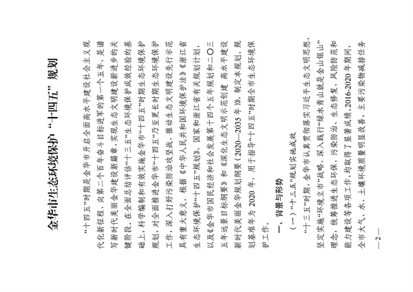 《金華市生態(tài)環(huán)境保護“十四五”規(guī)劃》