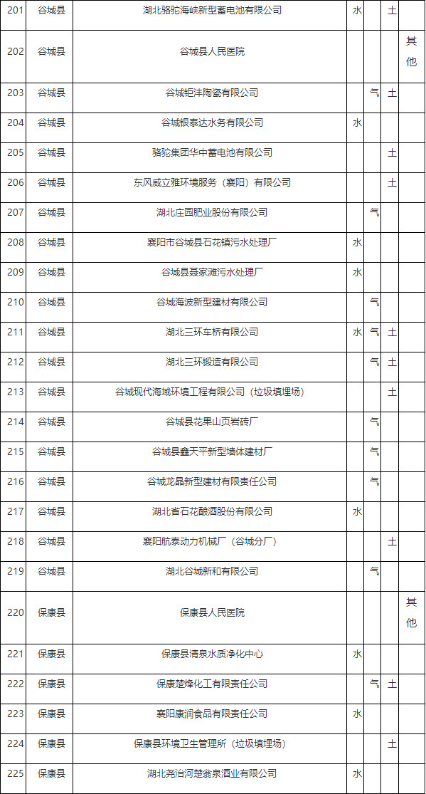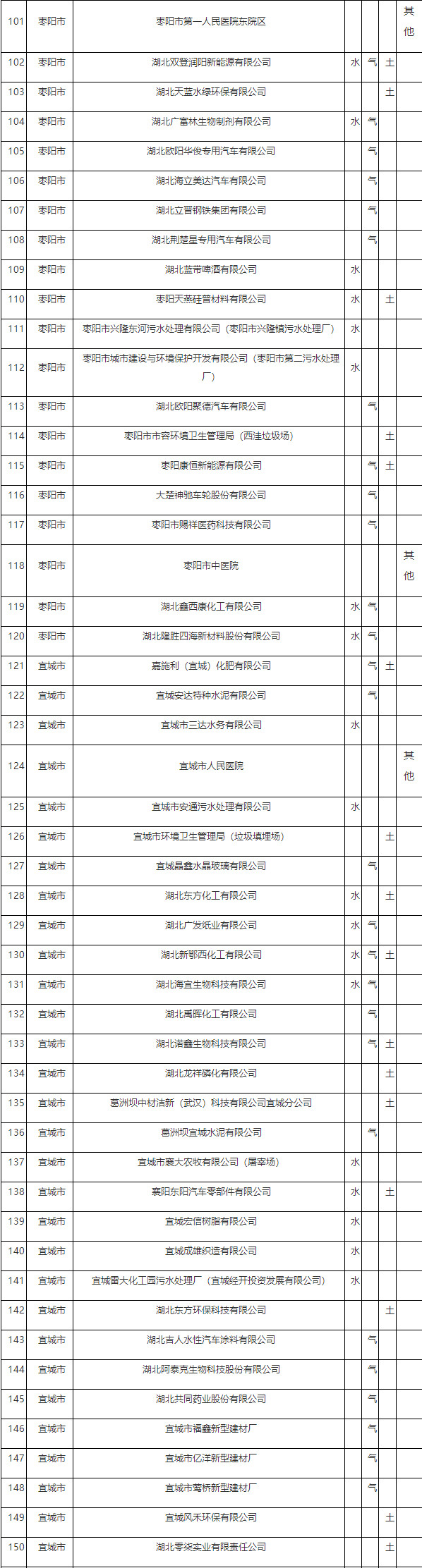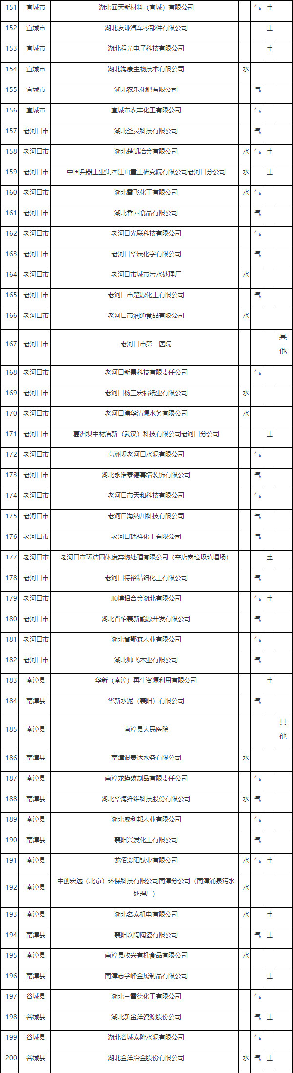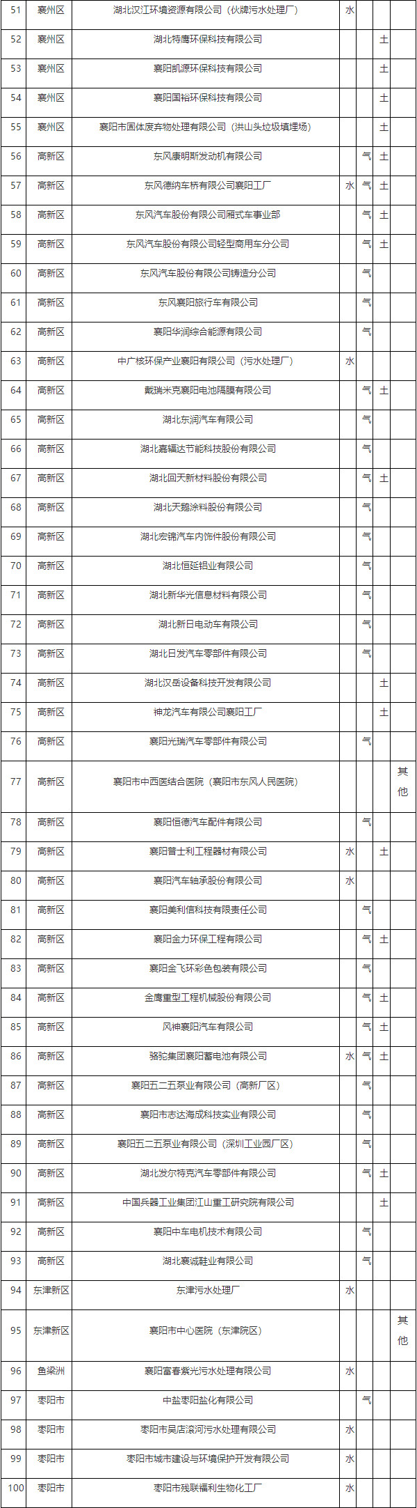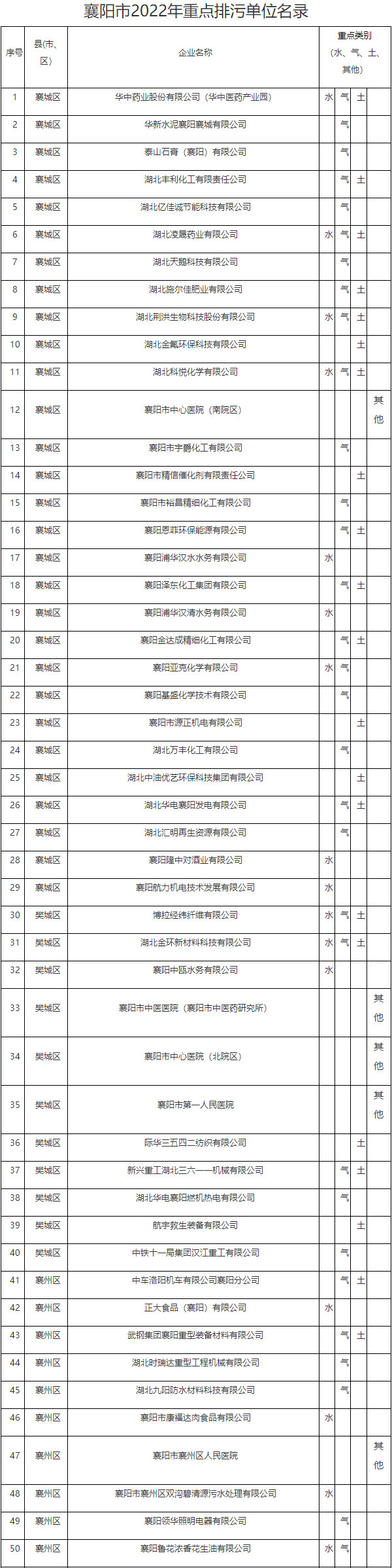 2021年3月31日《襄陽市2022年重點排污單位名錄》